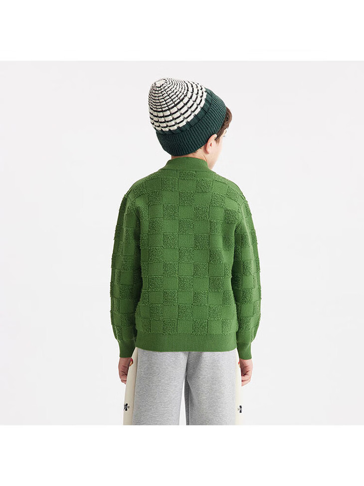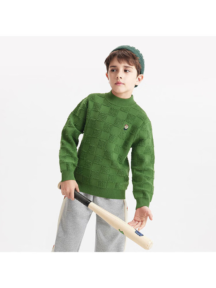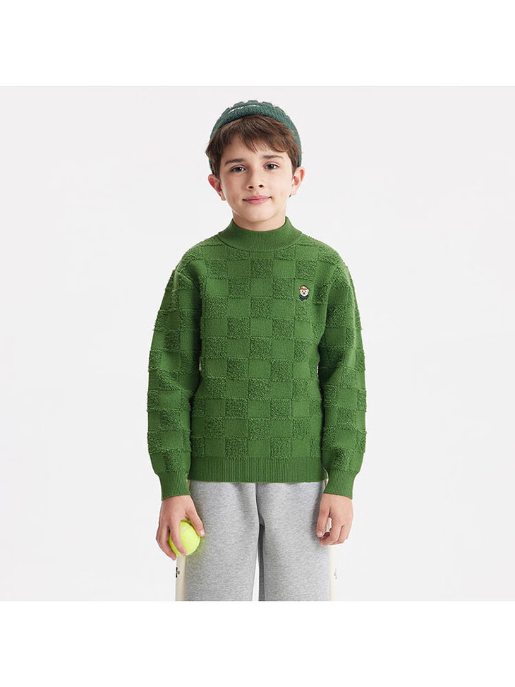 【秒】【特】【MQD】马骑顿童装男大童冬款棋盘格潮酷半高领套头毛衣