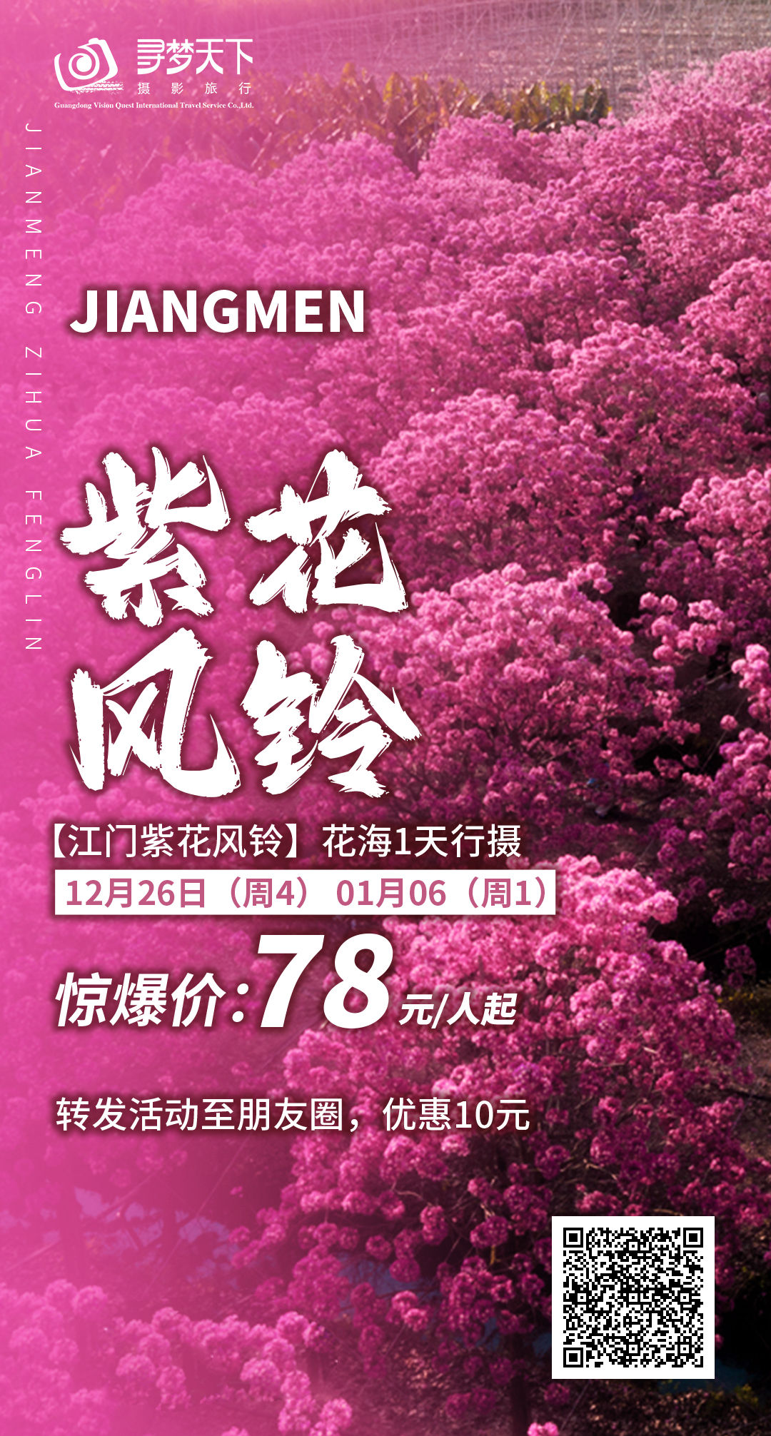 转发活动到朋友圈配文字“一起参加寻梦天下活动”,再优惠10元!即78元!