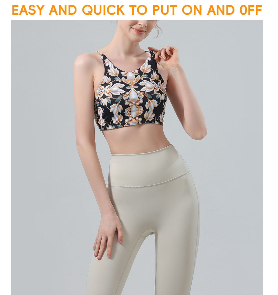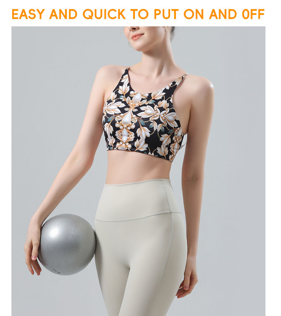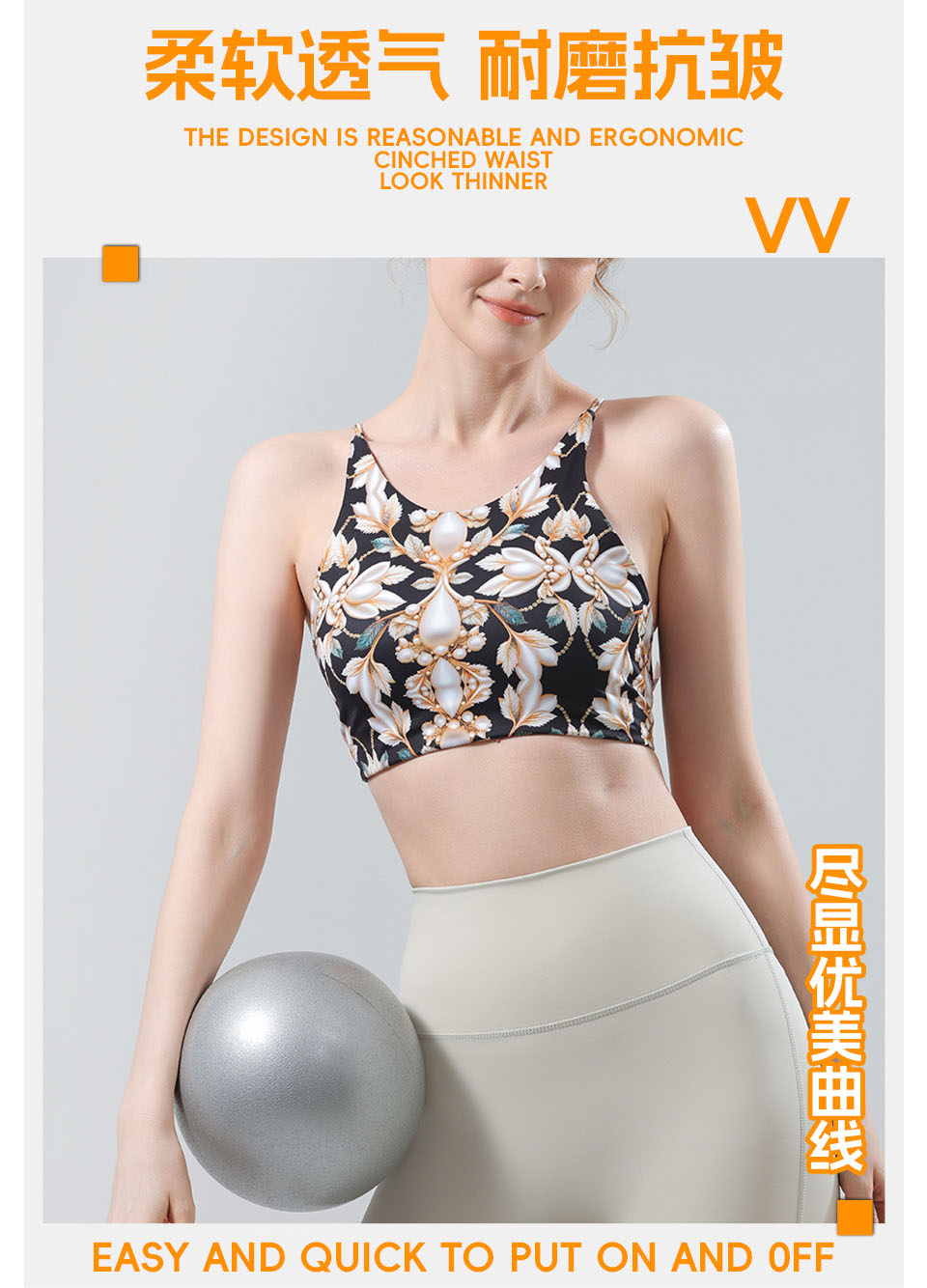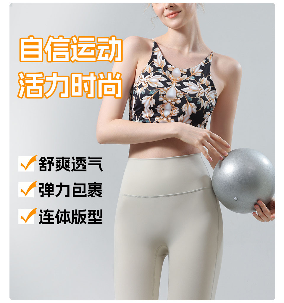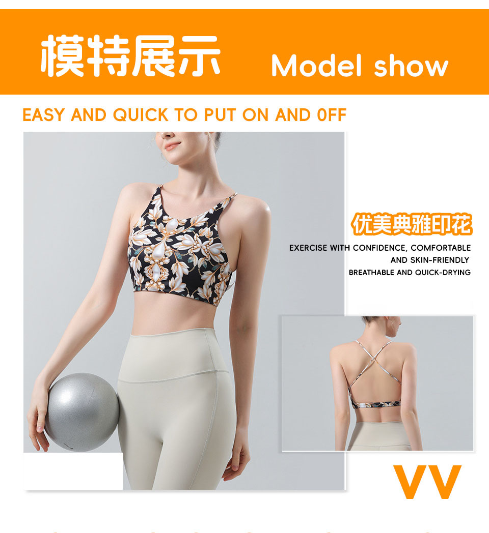 【126元任选2件】跃牌【漫西】系列 花色瑜伽服套装运动文胸内衣女聚拢性感美背心交叉吊带健身裤Y158