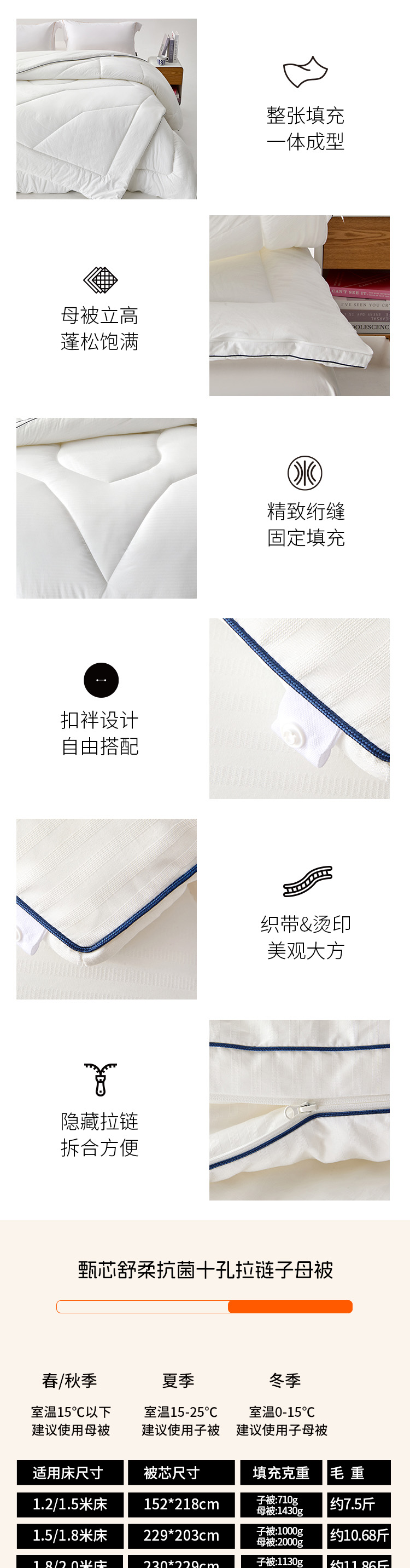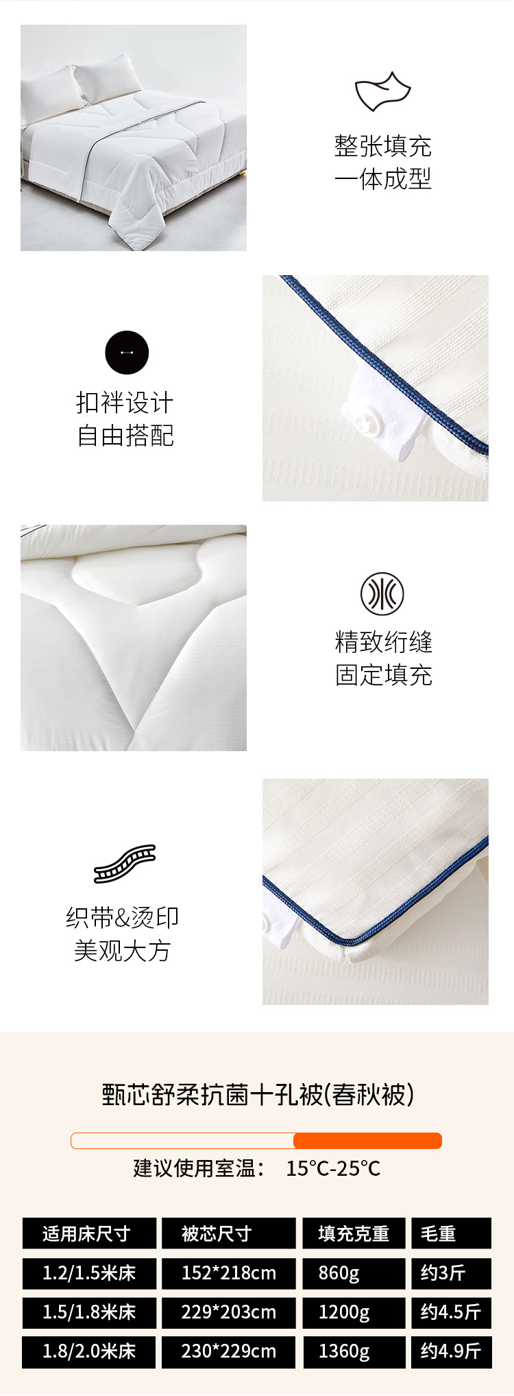 多喜爱 甄芯舒柔抗菌十孔春秋被/冬被/(拉链款)子母被系列hl【十孔纤维】【抗菌纤维】【提花磨绒】【织带工艺】蓬松温暖 柔软细腻 多款厚度 立高工艺