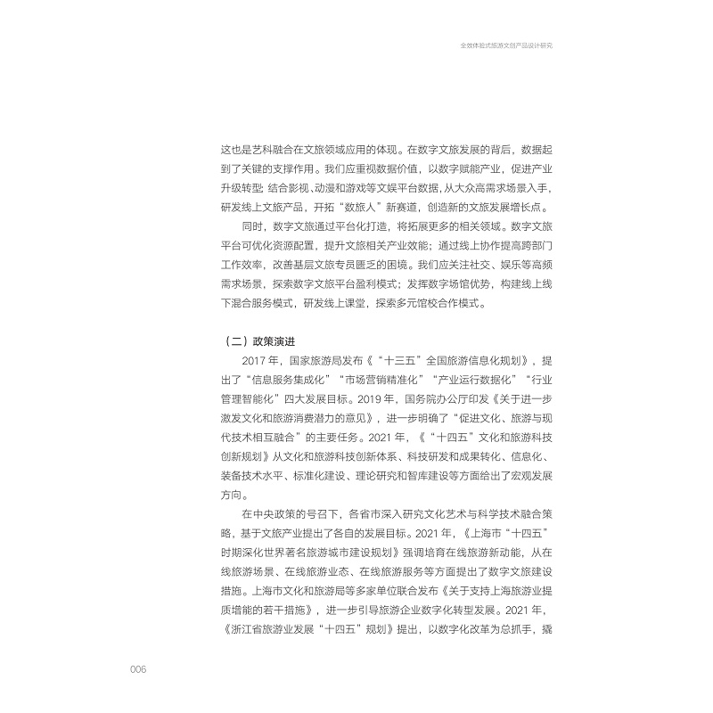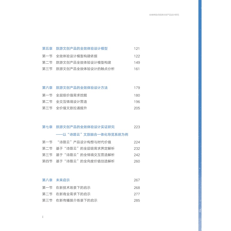 本书系“国家社科基金艺术学项目——全效体验式旅游文创产品的设计策略研究(20BG126)”成果。主要探讨了高质量发展时代际遇下,“体验式旅游文创产品”研发过程中涉及的:概念边界、理论模型、设计方法、实践案例等问题。研究团队在管理学、社会学、设计学多学科理论视角下,提出了基于需求、互动、价值三大维度的“全效体验设计”新概念,面向旅游文创产品构建了“全效体验设计”理论新模型,形成基于“全效体验思维”新视角。为新时期文旅产业转型发展提供新策略、新路径。本书面向新时期,为体验设计研究与实践者、文创产品研发与营销者、文旅产业布局与经营者,在理论探究与实践拓新环节,提供思路与线索。