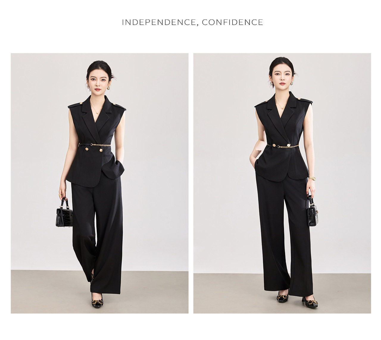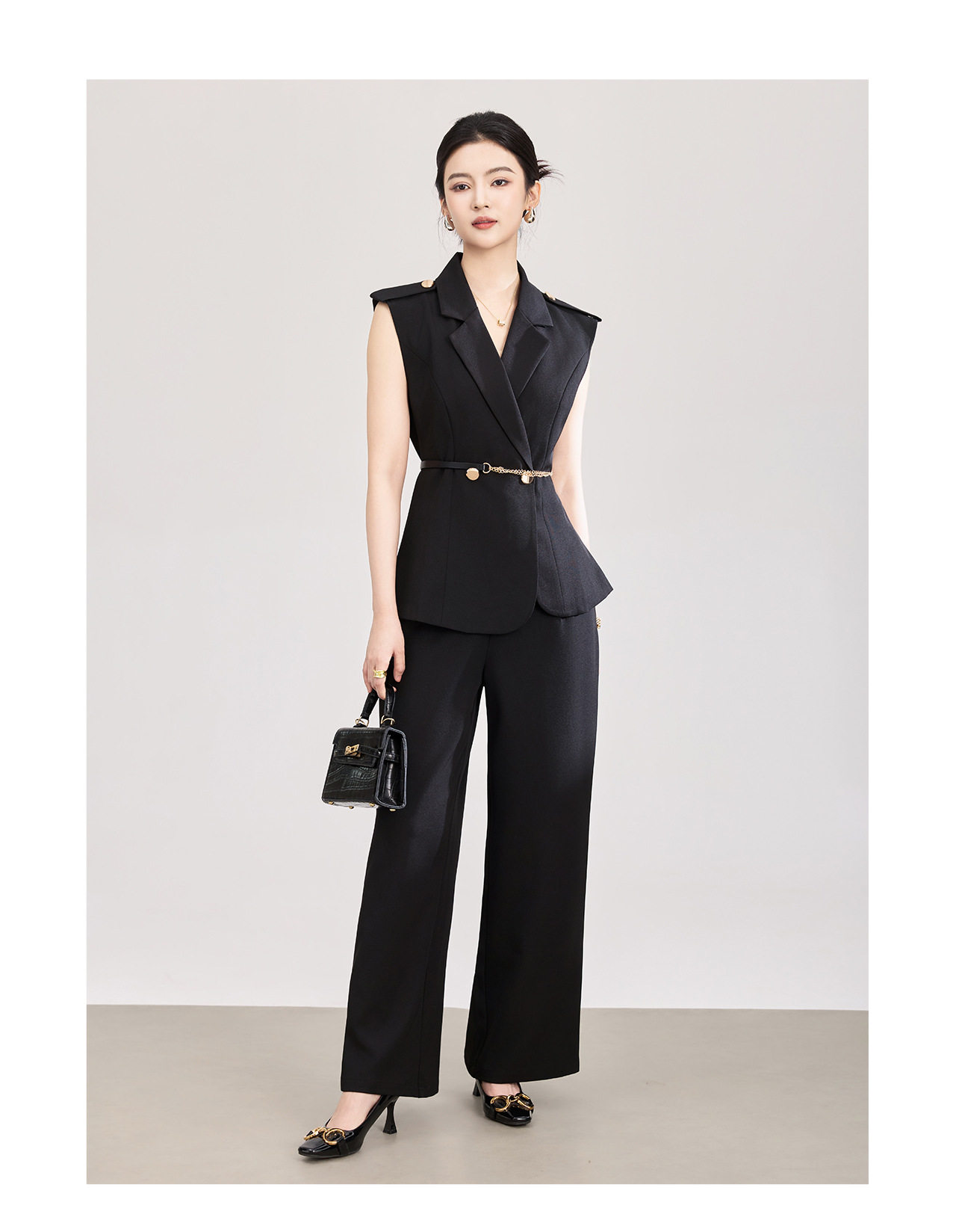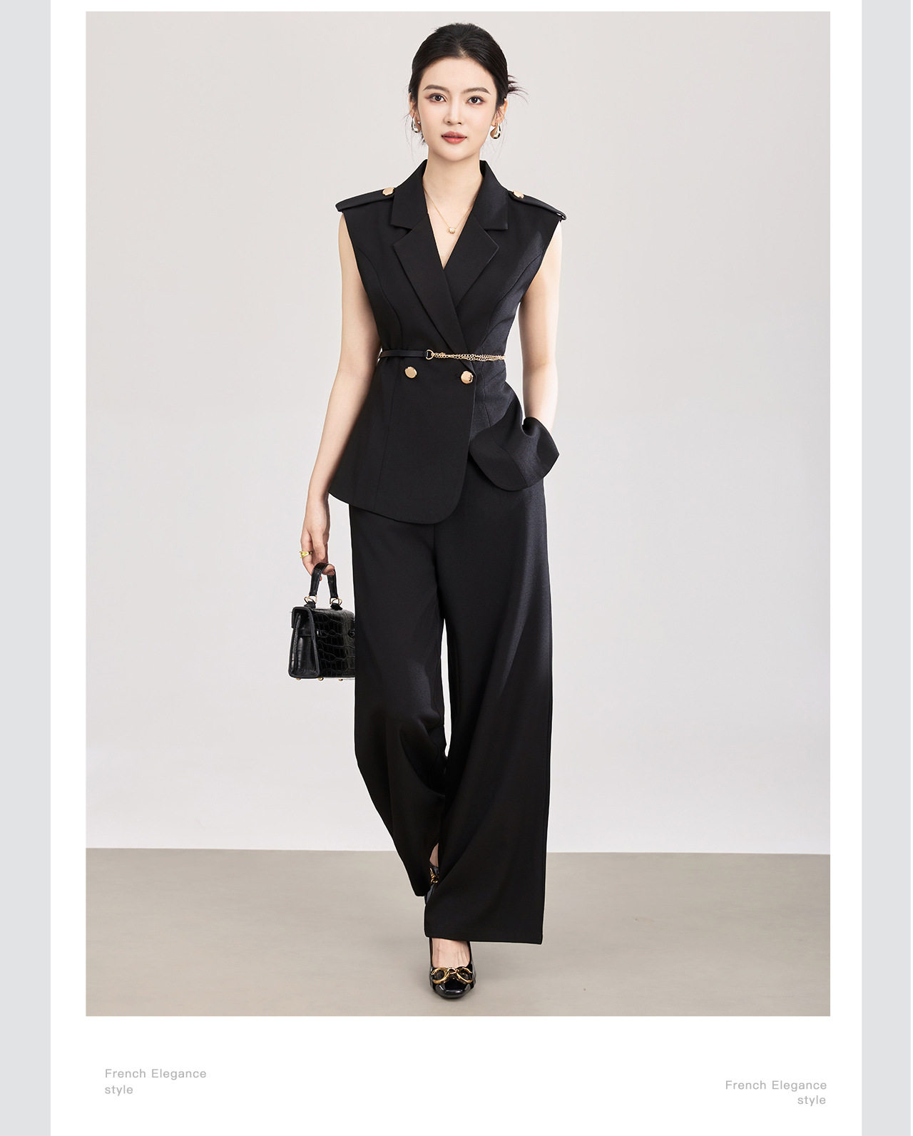 「高货wl」全新升级【铂金会员358/天猫479/差价121】(99601)洛诗琳2026新款气质通勤西装收腰马甲高腰阔腿长裤两件套