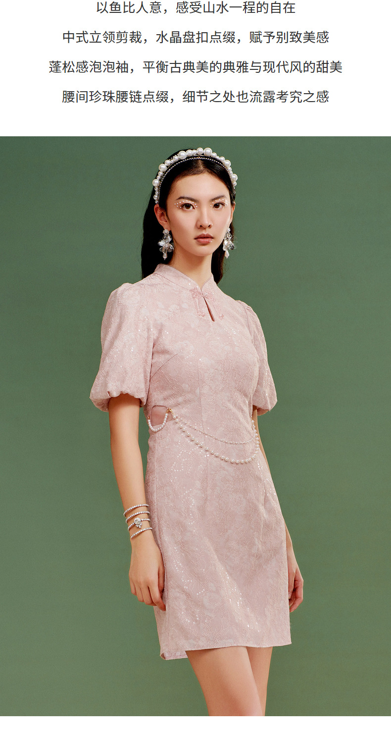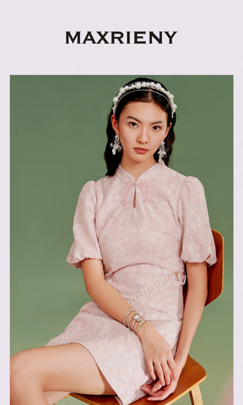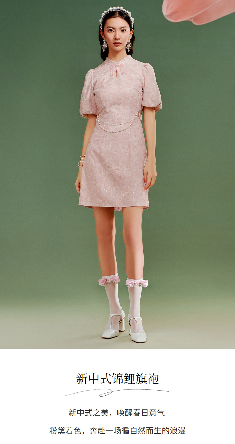 MAXRIENY国风锦鲤连衣裙盘扣新中式旗袍改良(货号:MS88DR011)