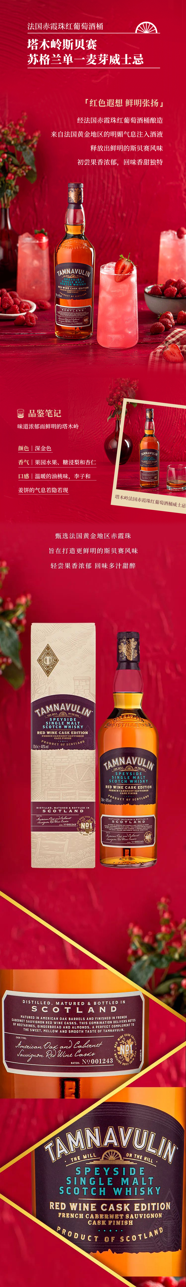 塔木岭斯贝塞苏格兰单一麦芽威士忌(法国赤霞珠红葡萄酒桶)Tamnavulin Red Wine French Cabernet Sauvignon Cask Whisky