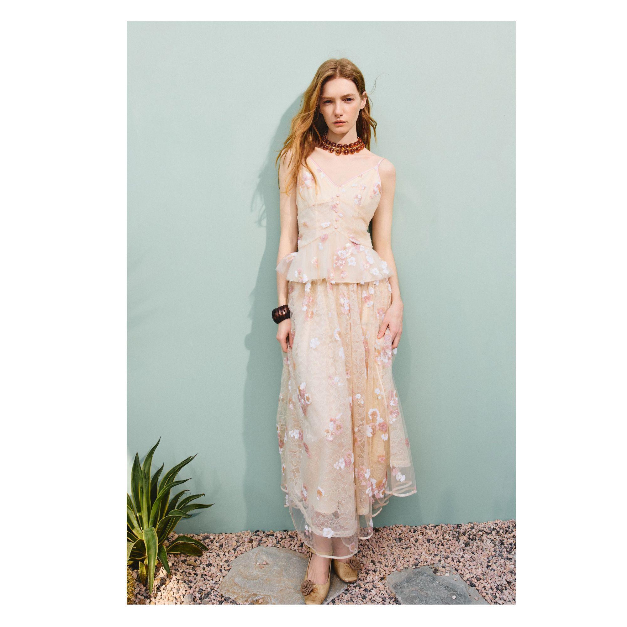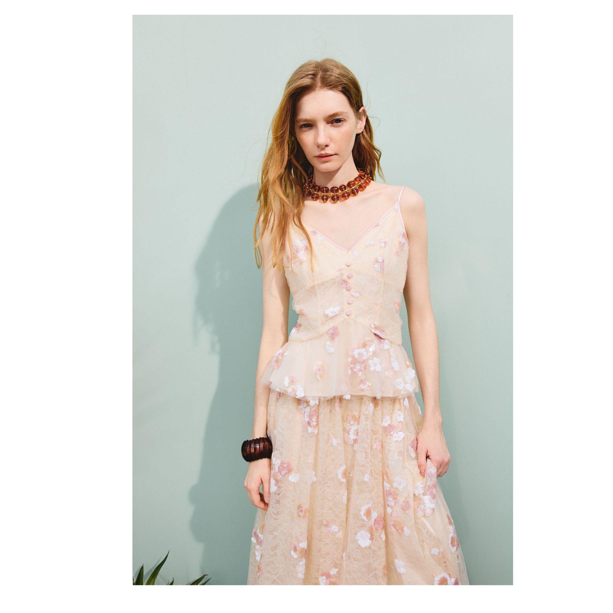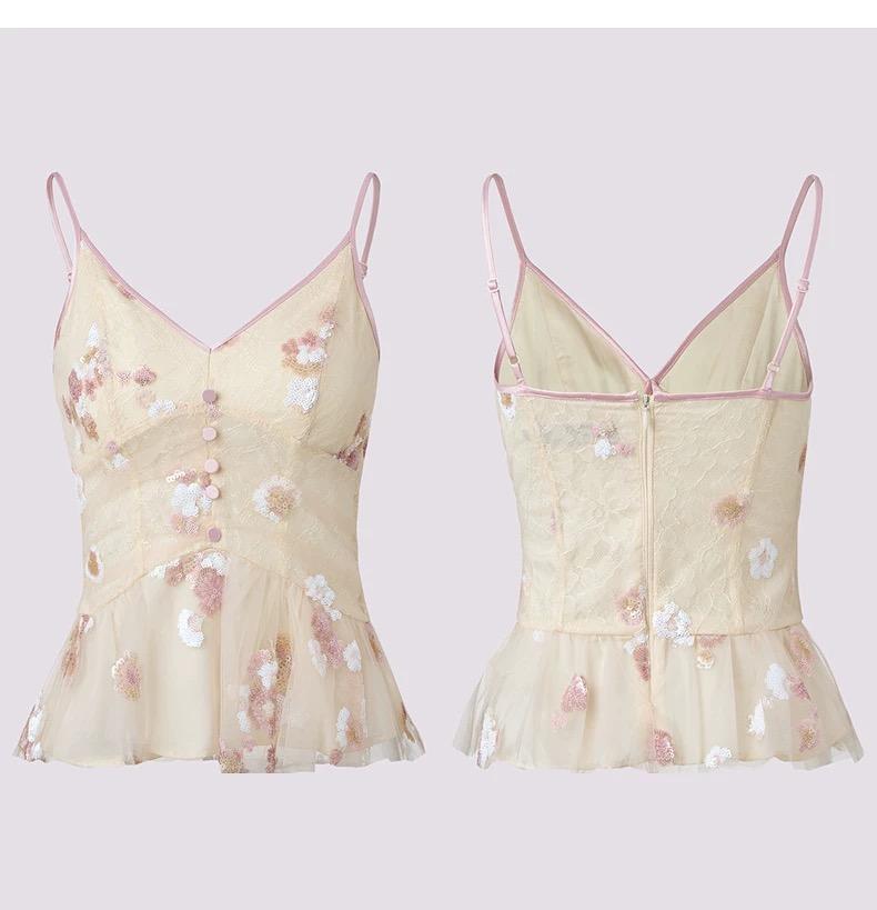 MAXRIENY2025年春夏新款重工吊带蕾丝绣花度假风女士通勤法式(货号:MF86TP006)