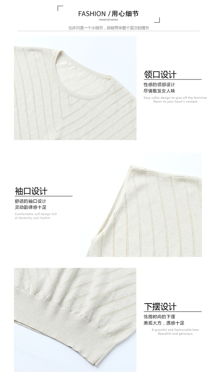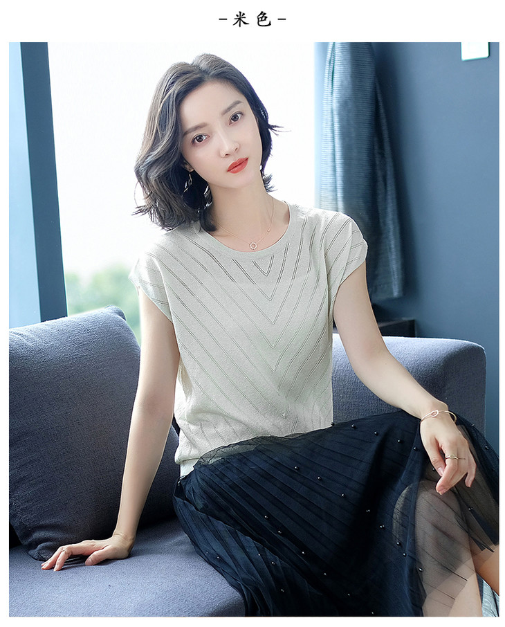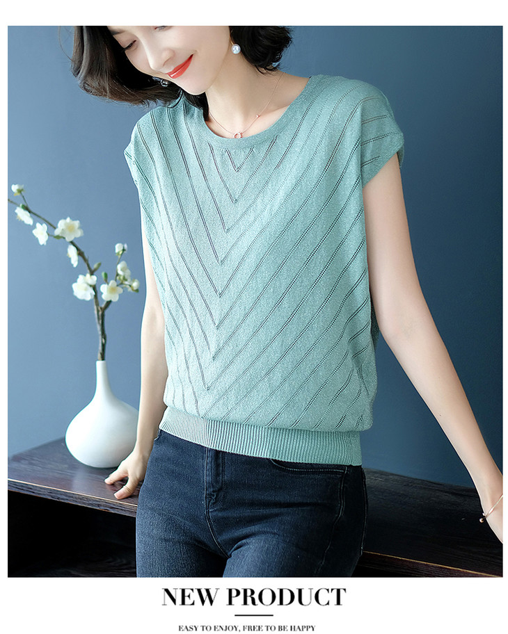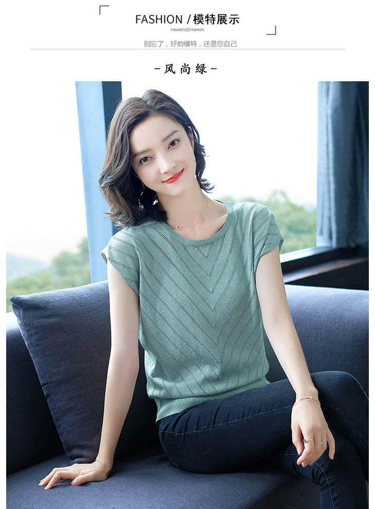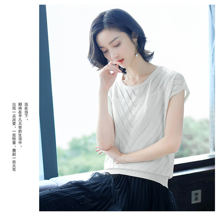 PY-38810 春季薄款女士针织衫时尚镂空V字纹短袖蝙蝠衫宽松显瘦女士上衣