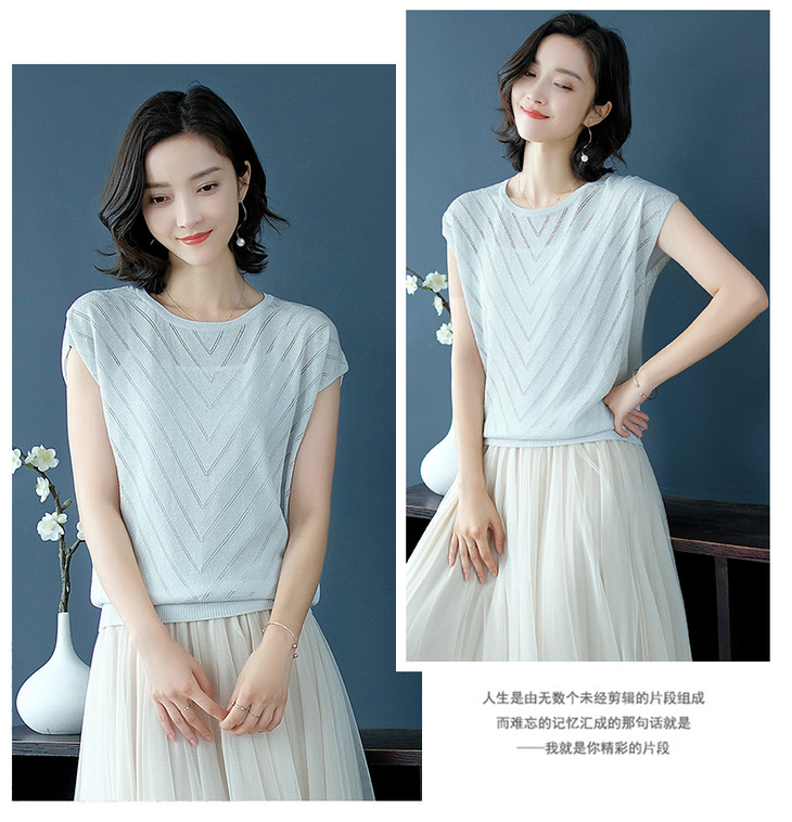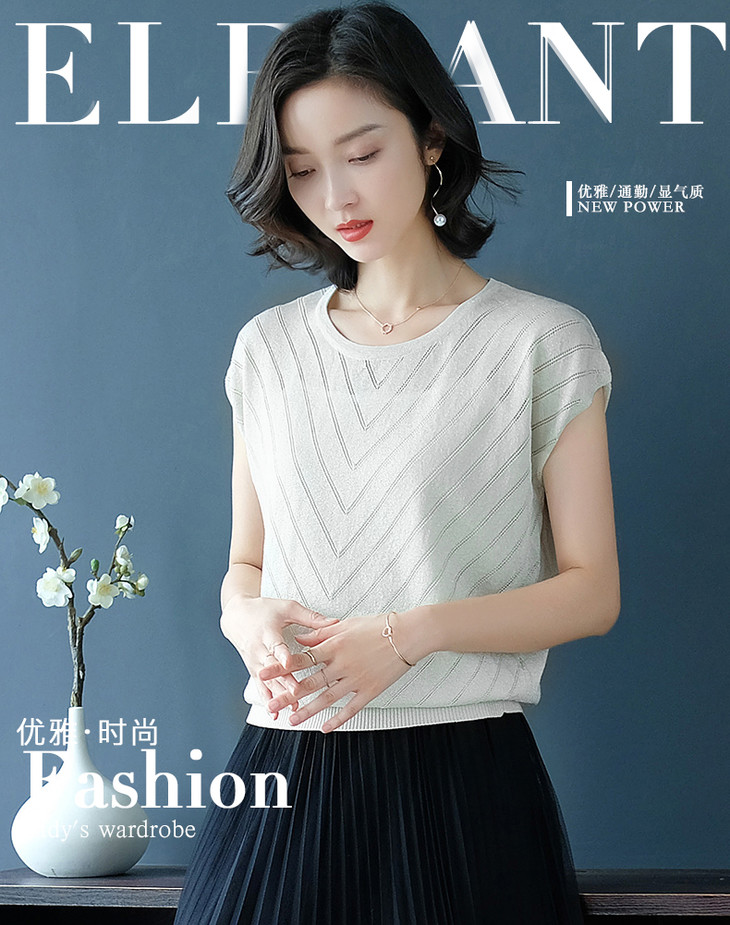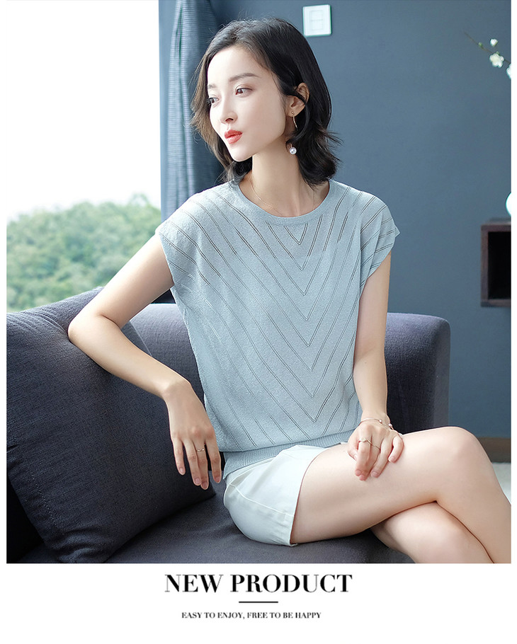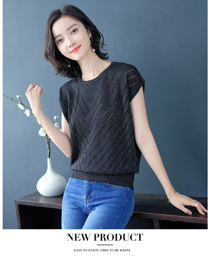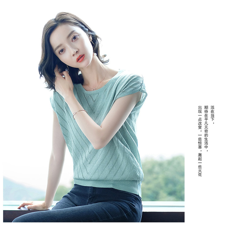 PY-38810 春季薄款女士针织衫时尚镂空V字纹短袖蝙蝠衫宽松显瘦女士上衣