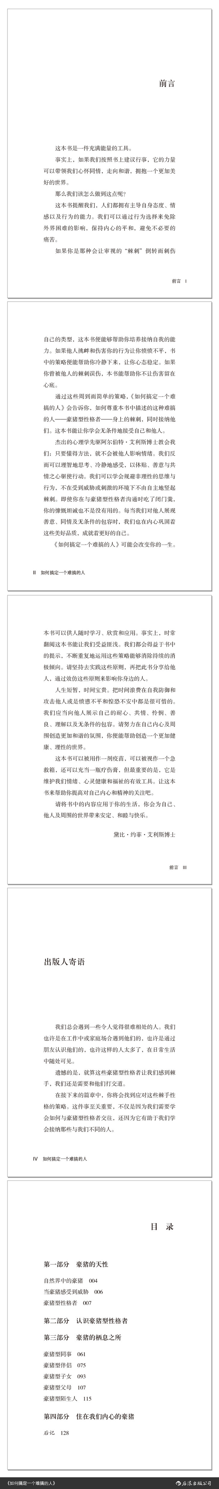 我们需要一些新策略来应对这群“豪猪型性格者”。他们可能是我们的同事或朋友,也可能是我们的父母或儿女,当然更可能是路上的陌生人,甚至也可能是我们内心那个真实的自我。书中提供的方法可以让你安抚他人,与自己和解,不再被情绪裹挟,尽情享受生活原本的美好。