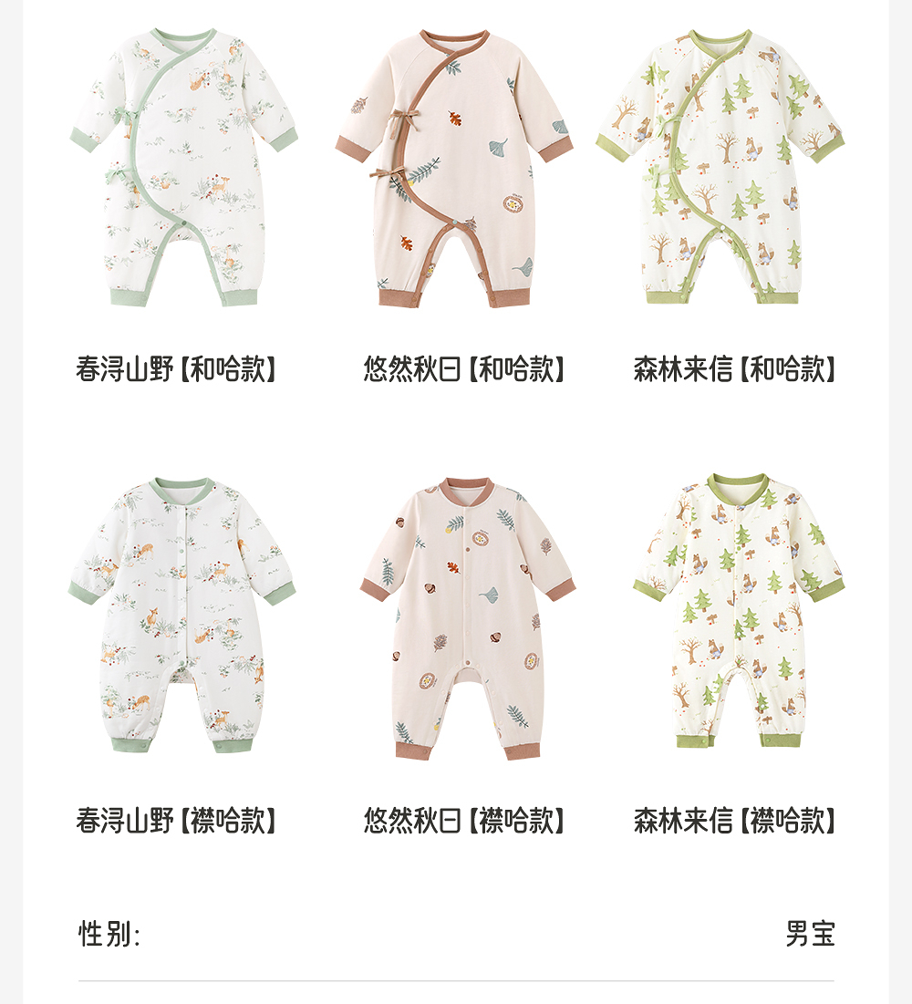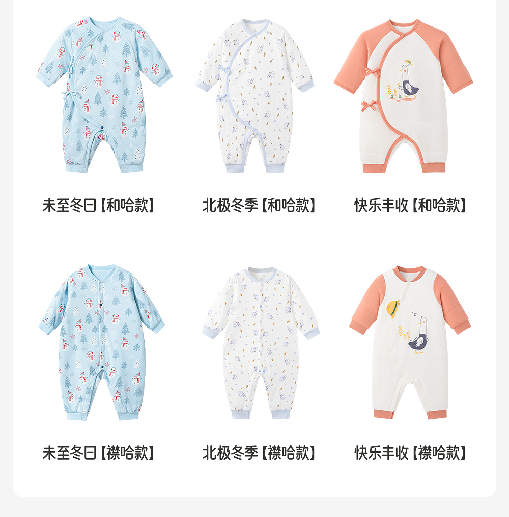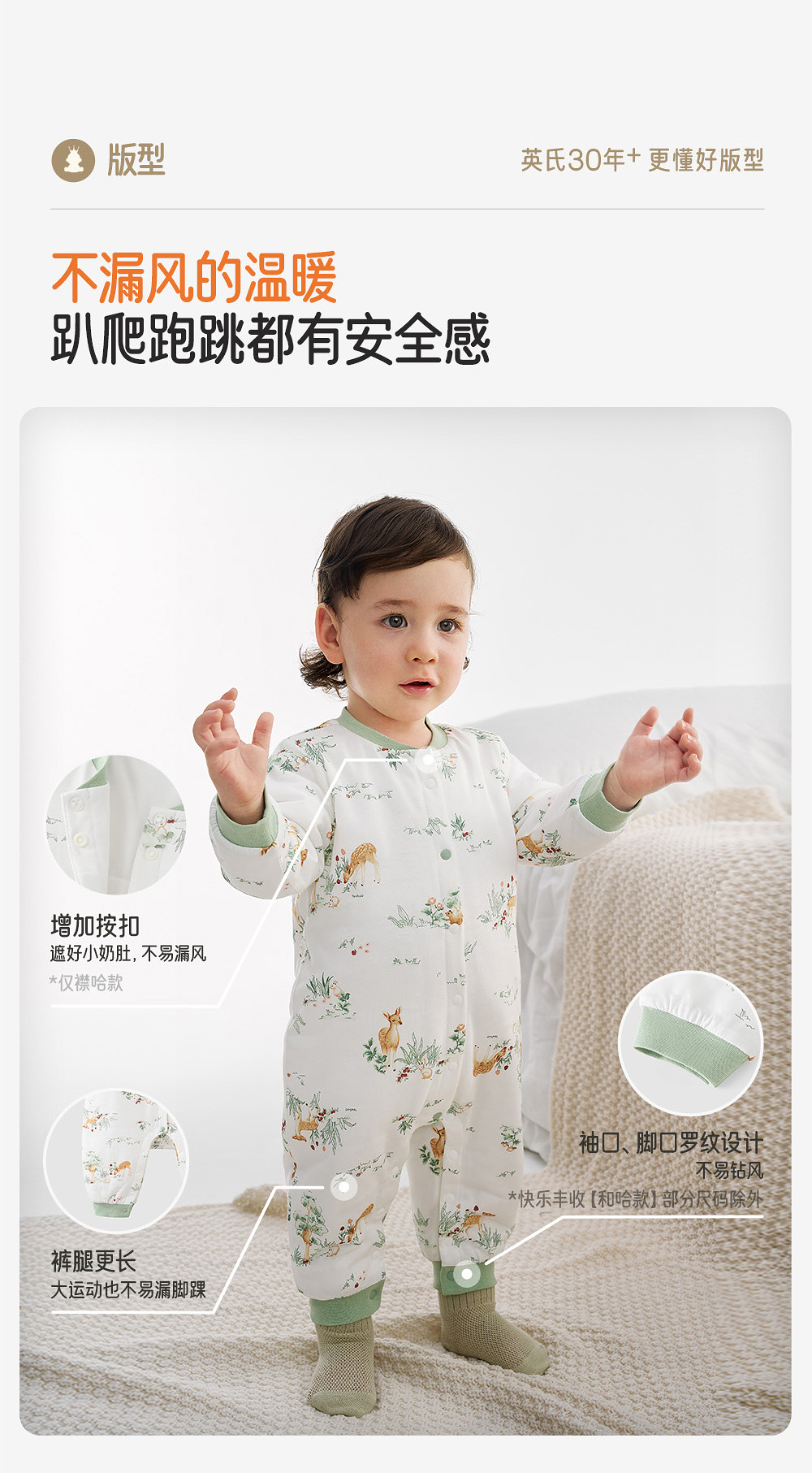 英氏婴儿夹棉连体衣秋冬加厚保暖新生儿冬季宝宝衣服新款哈衣