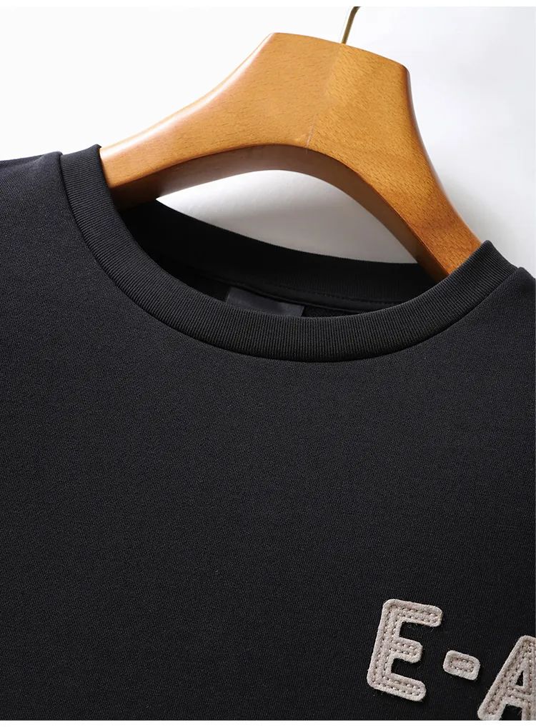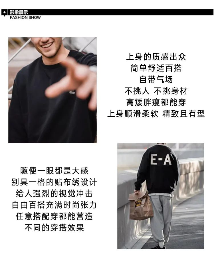 柜2800!阿尼玛同款男士贴布绣休闲圆领毛圈卫衣