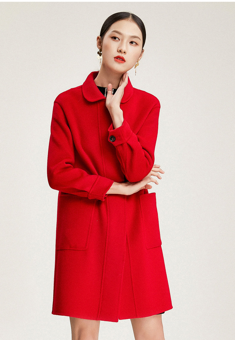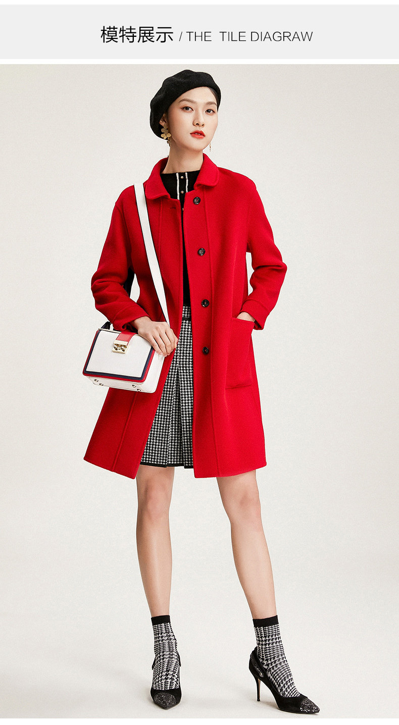 【羊绒】乔万尼流行毛呢大衣女中长款气质双面呢外套羊毛呢EN4A729