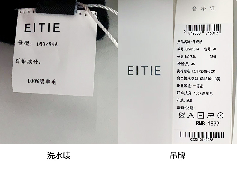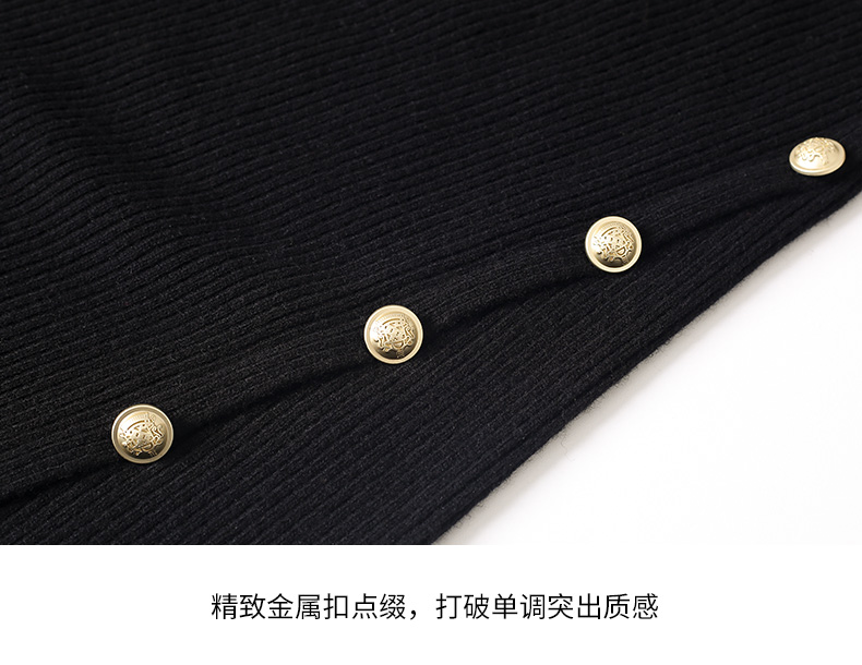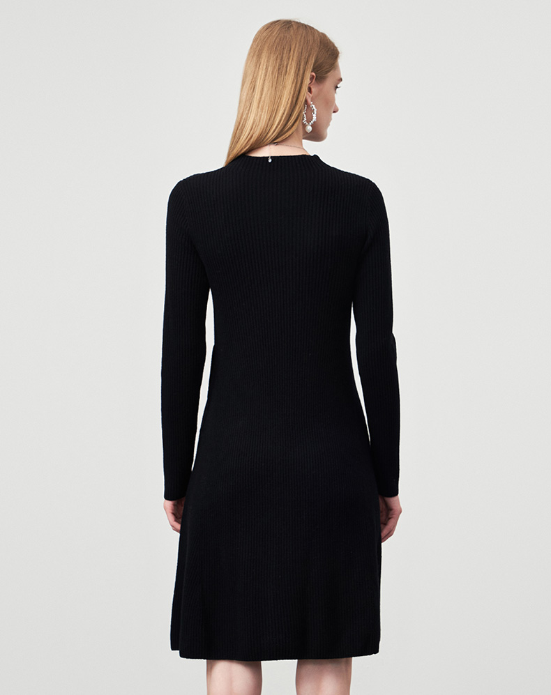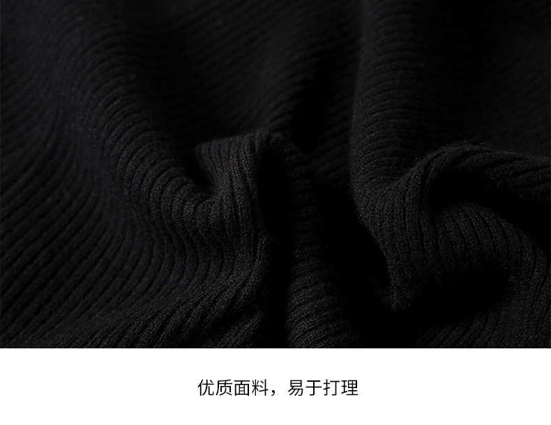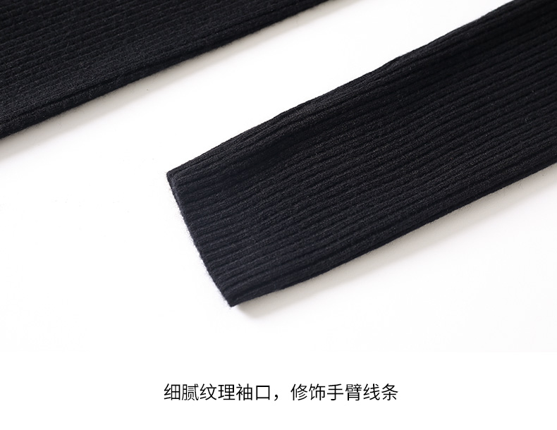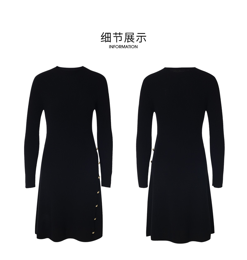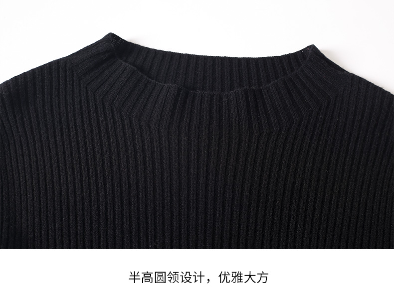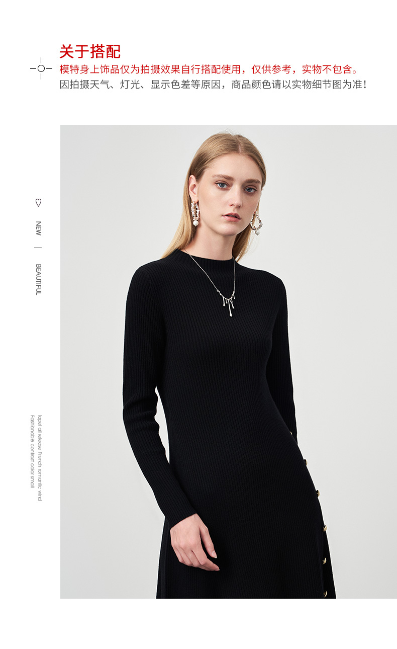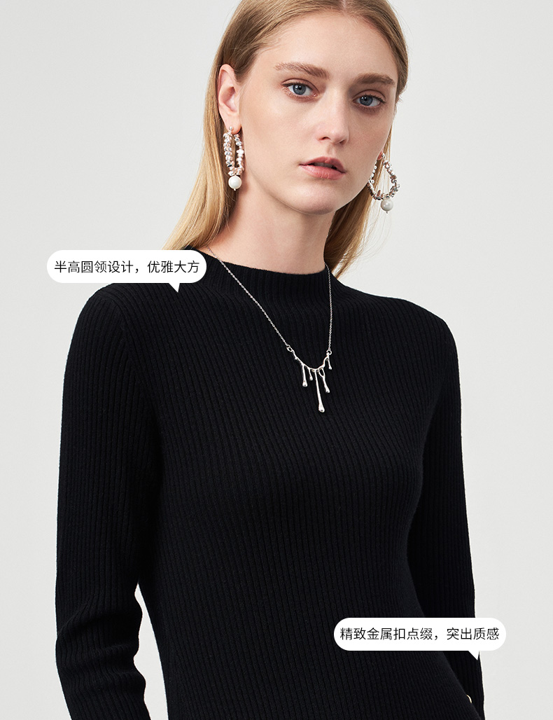 EITIE爱特爱秋季新款100%绵羊毛气质半高领黑色修身显瘦通勤针织连衣裙C2201014