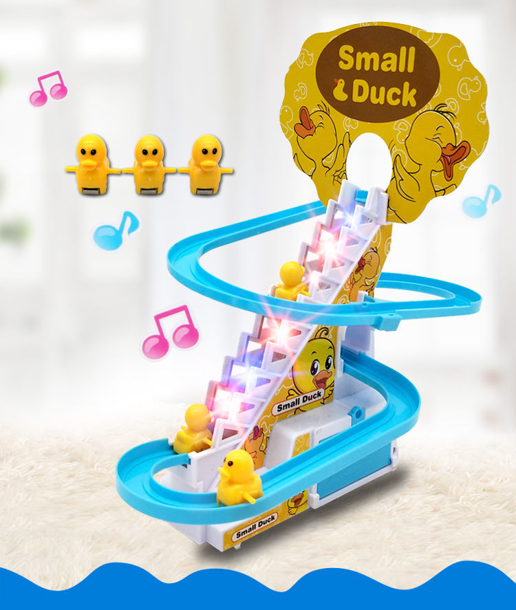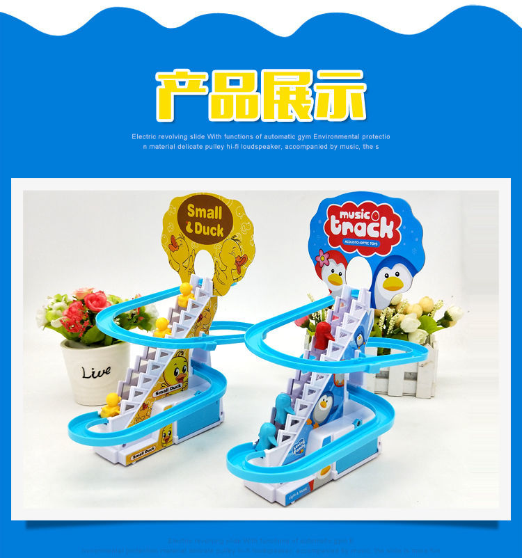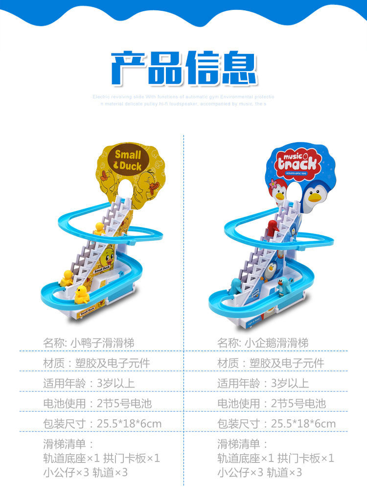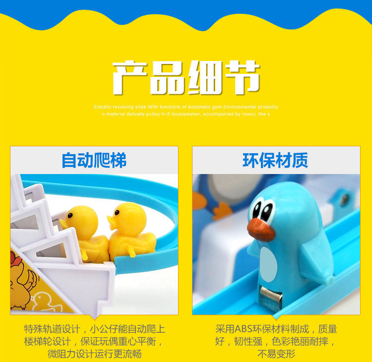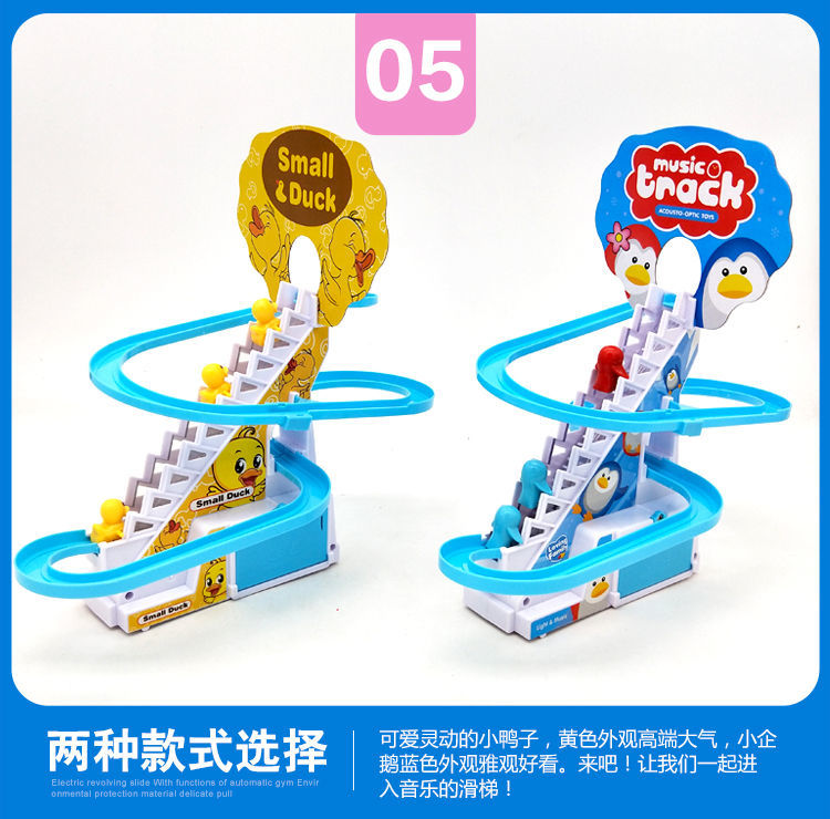 【网红小黄鸭萌趣自动爬梯】电动轨道滑滑梯音乐灯光益智拼装玩具
