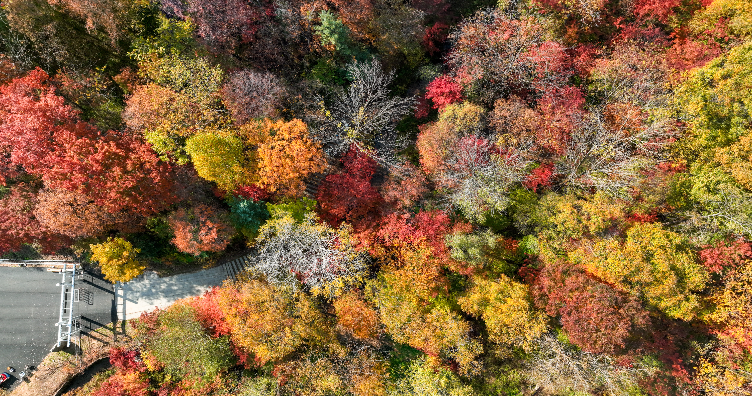 四方顶有“龙岗画苑、枯木天堂”的美誉。这里火山遗迹遍布,肥沃的火山土孕育了无数的生灵,其中就包括大面积的原始枫叶林。