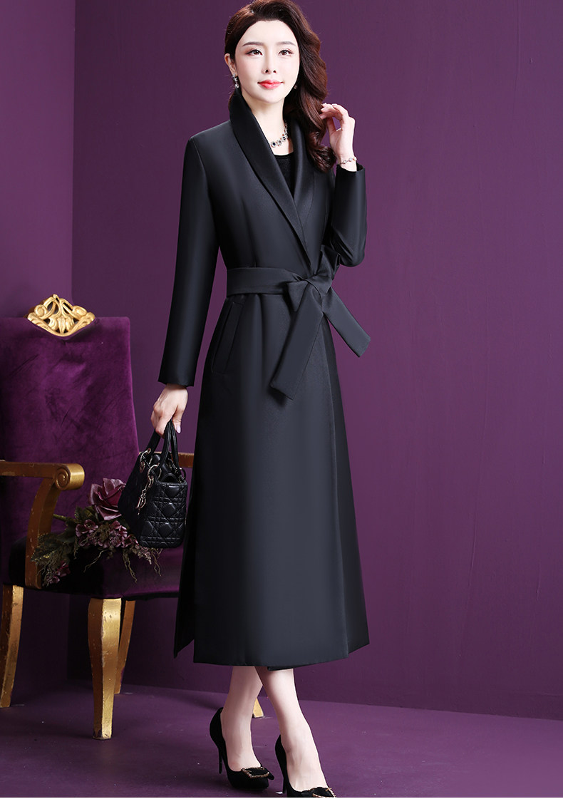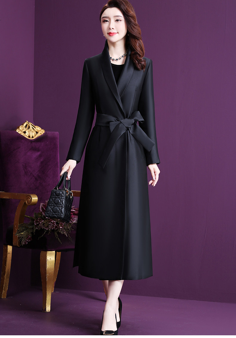 WXY-W-YH-F058秋新款西装领大码长款赫本风流行法式外套