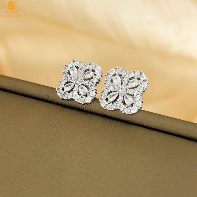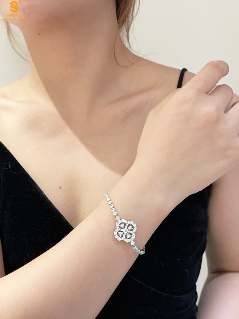【甜蜜浪漫 幸而有你】香港周六福 幸运满钻四叶草K铂金项链(高定礼盒) 幸运四叶草闪耀K铂金手绳(高定礼盒) 幸运满钻四叶草K铂金耳钉(高定礼盒)