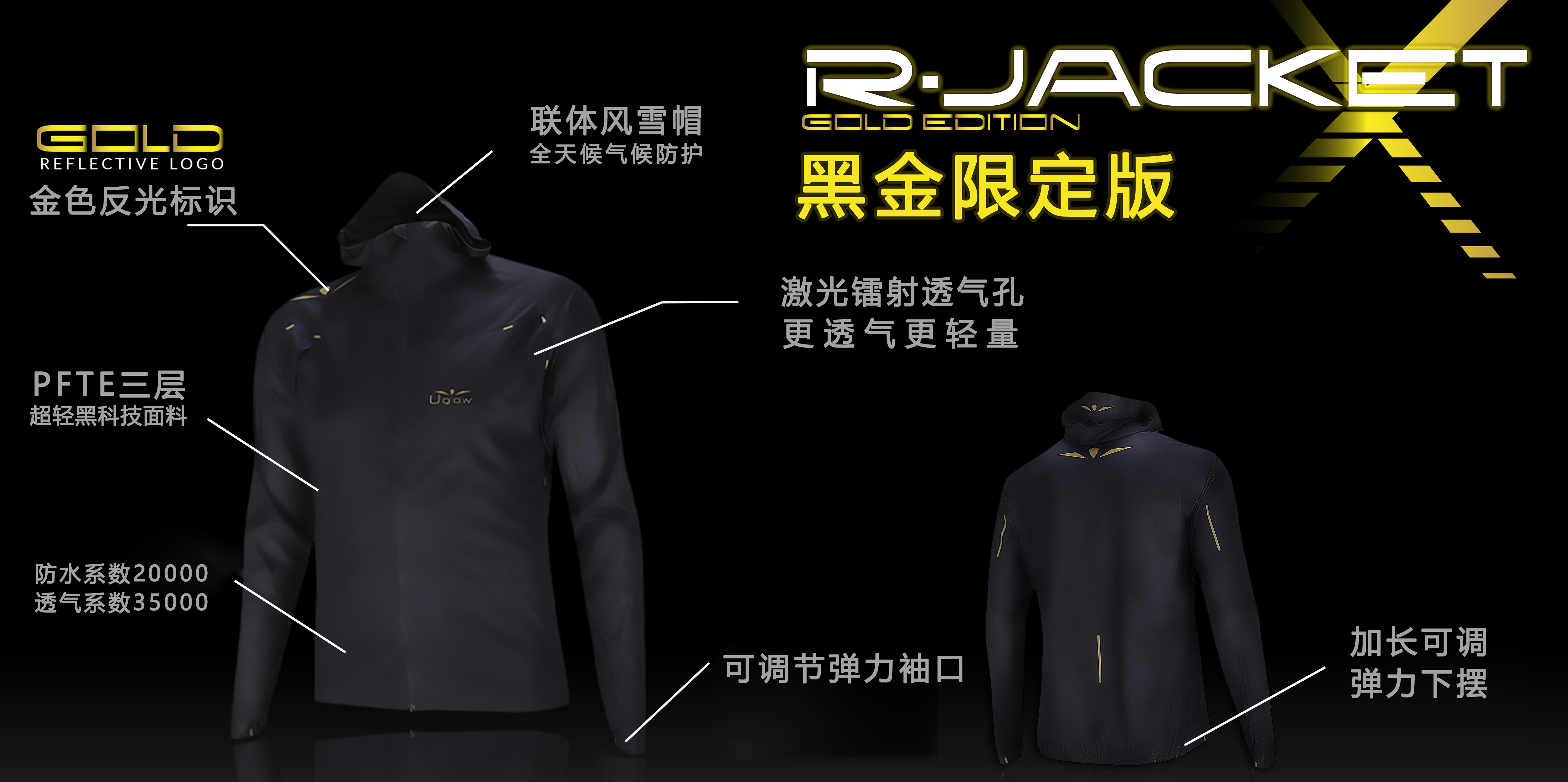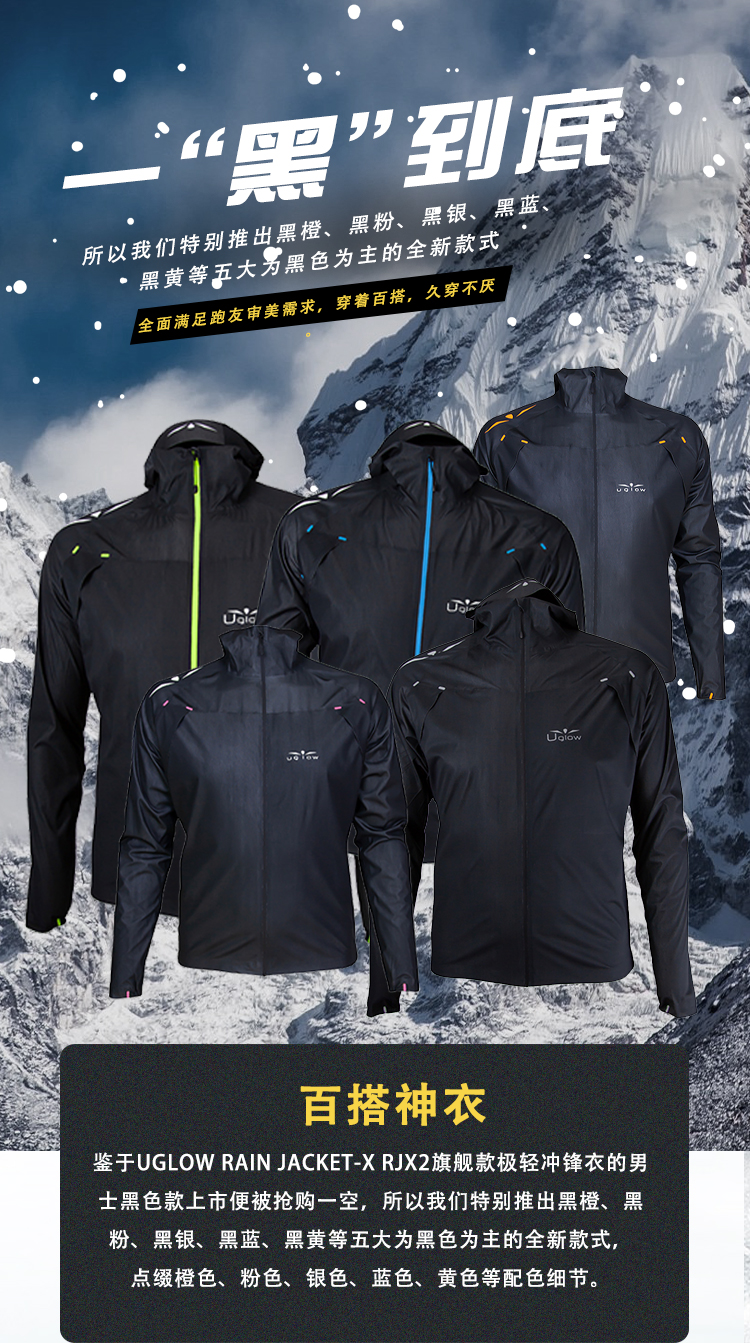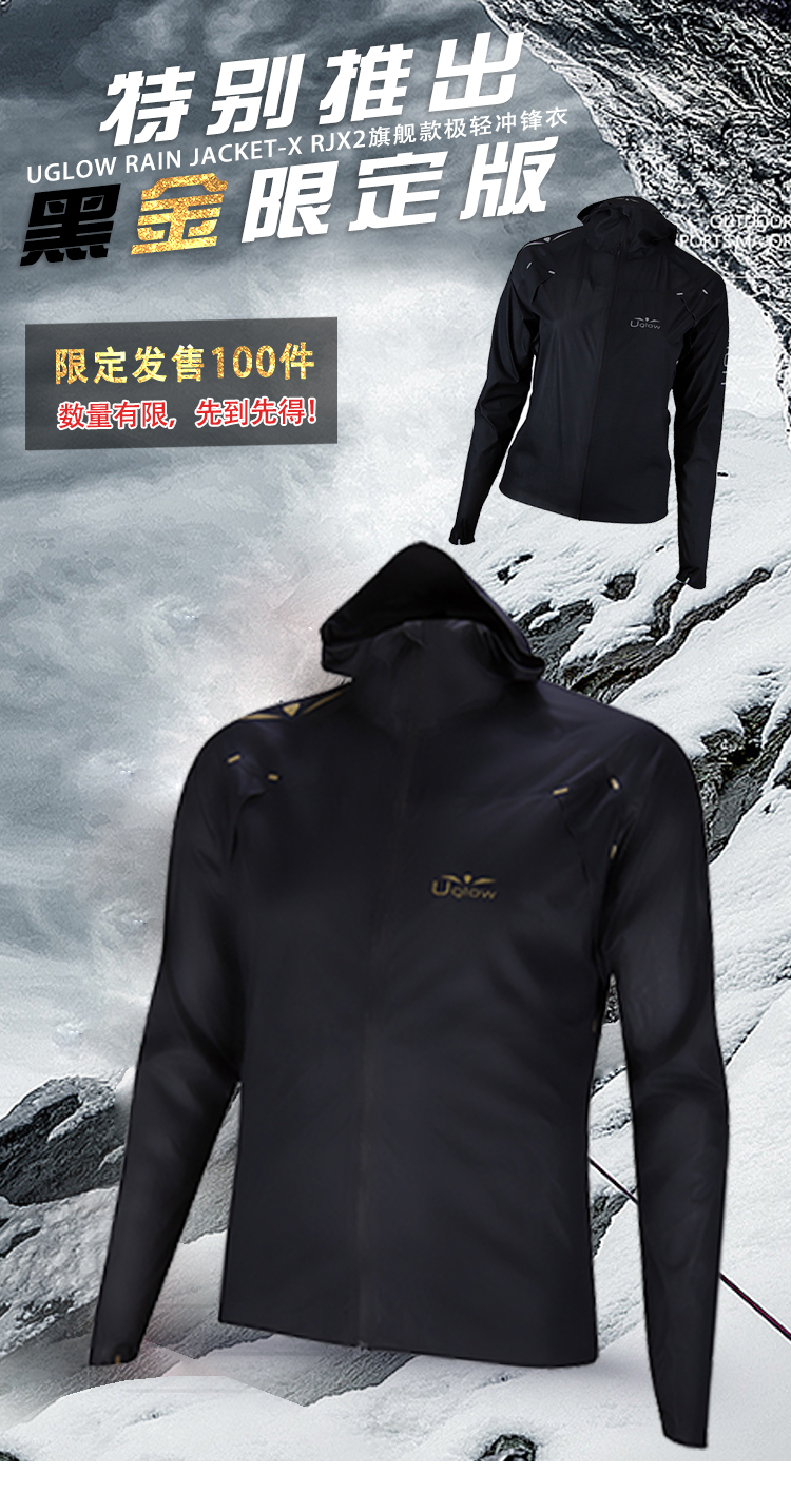 UGLOW旗舰款极轻冲锋衣RAIN JACKET-X RJX2超轻连帽防风防水三层全压胶越野耐力赛强制装备