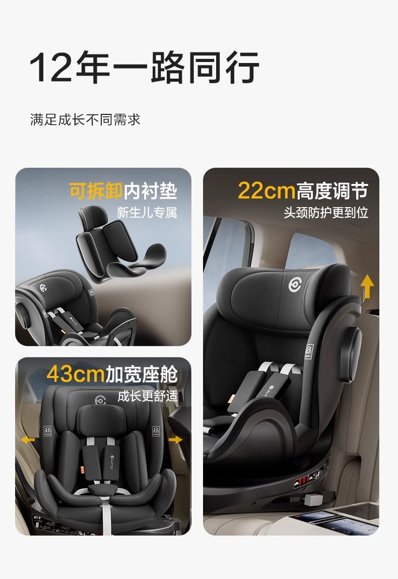 【分销专属】逸乐途S2小骑士安全座椅新生儿童婴儿车载0-8-12岁汽车用可坐可躺
