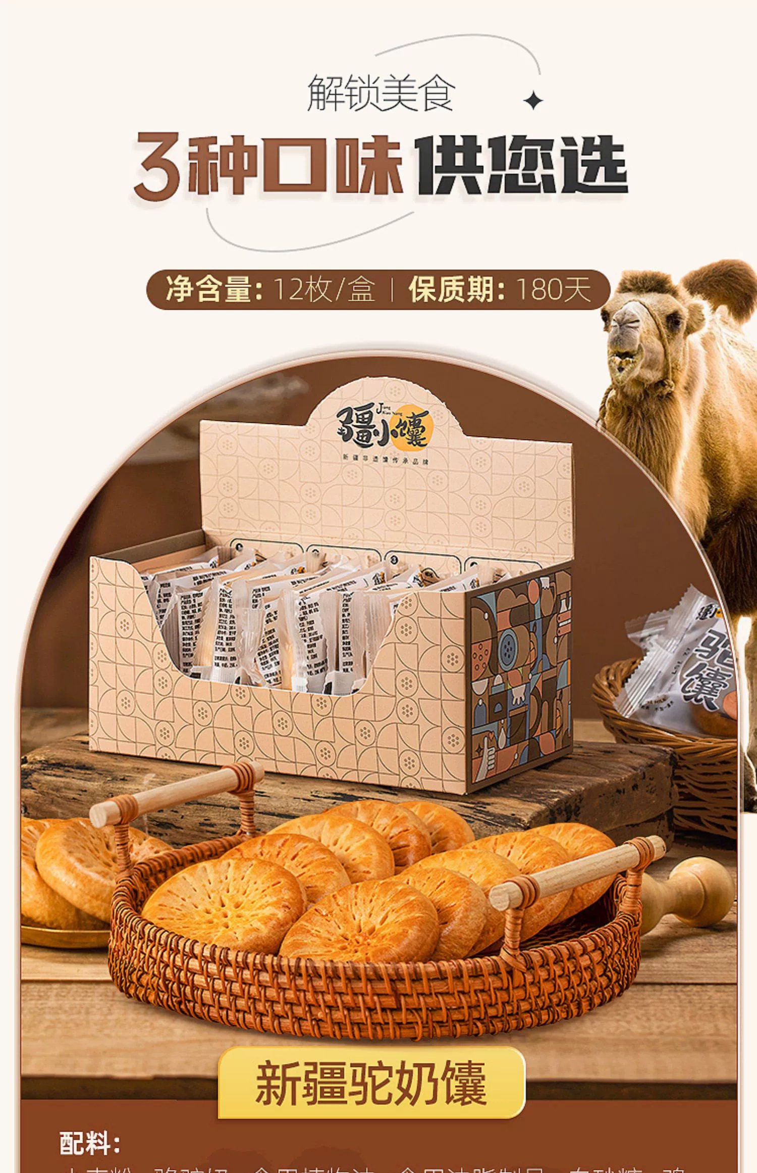 新疆疆小馕驼奶馕/牛乳囊/玫瑰花馕 多口味馕 组合 330g/盒12枚