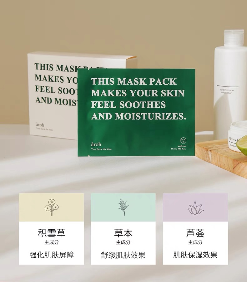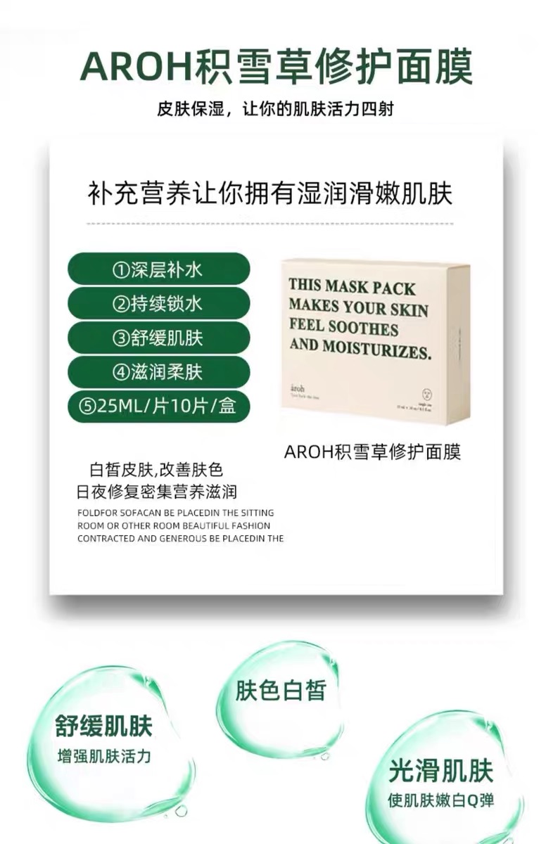 韩国AROH海洋保湿+积雪草+乳酸菌面膜一盒10片