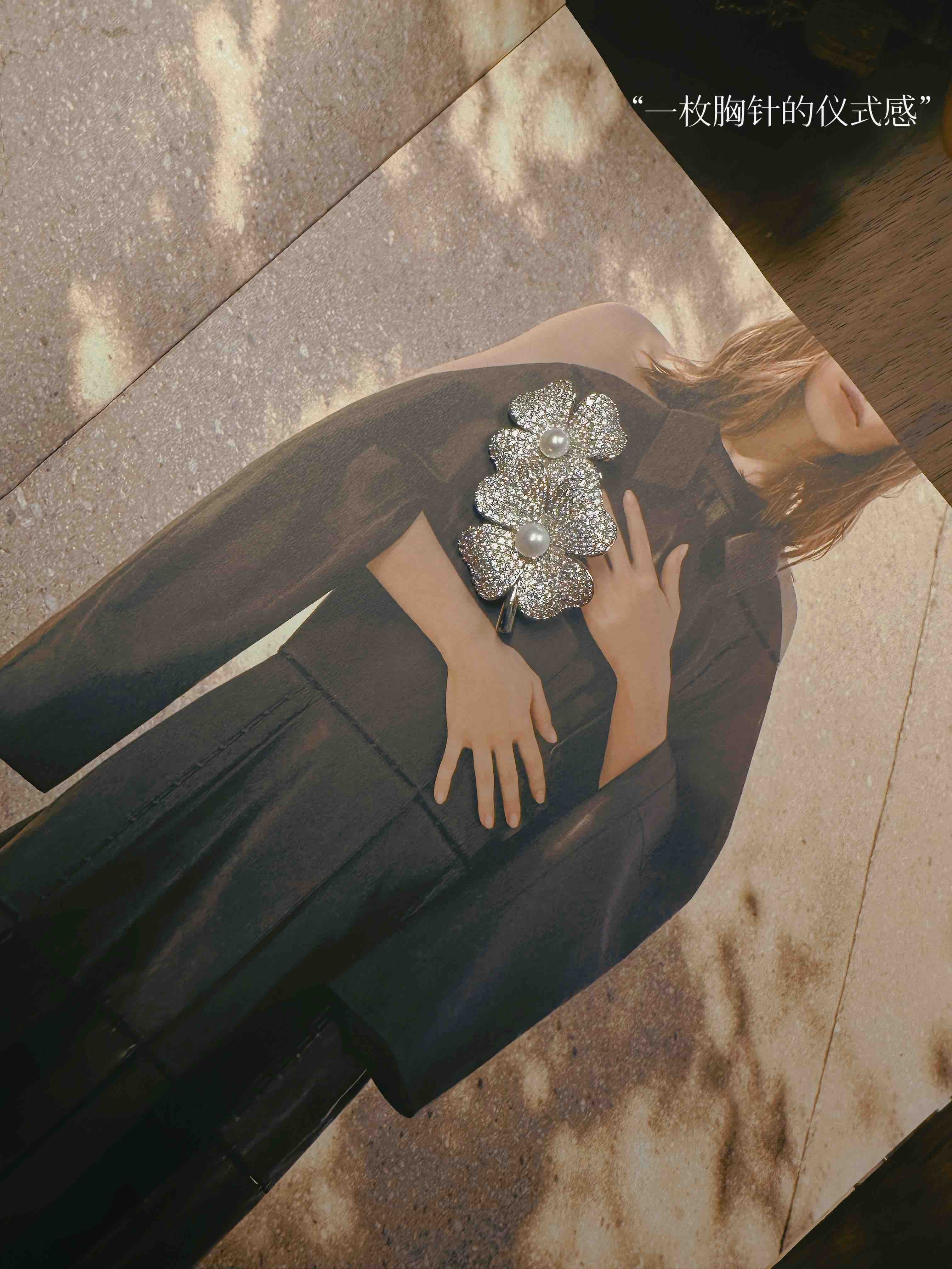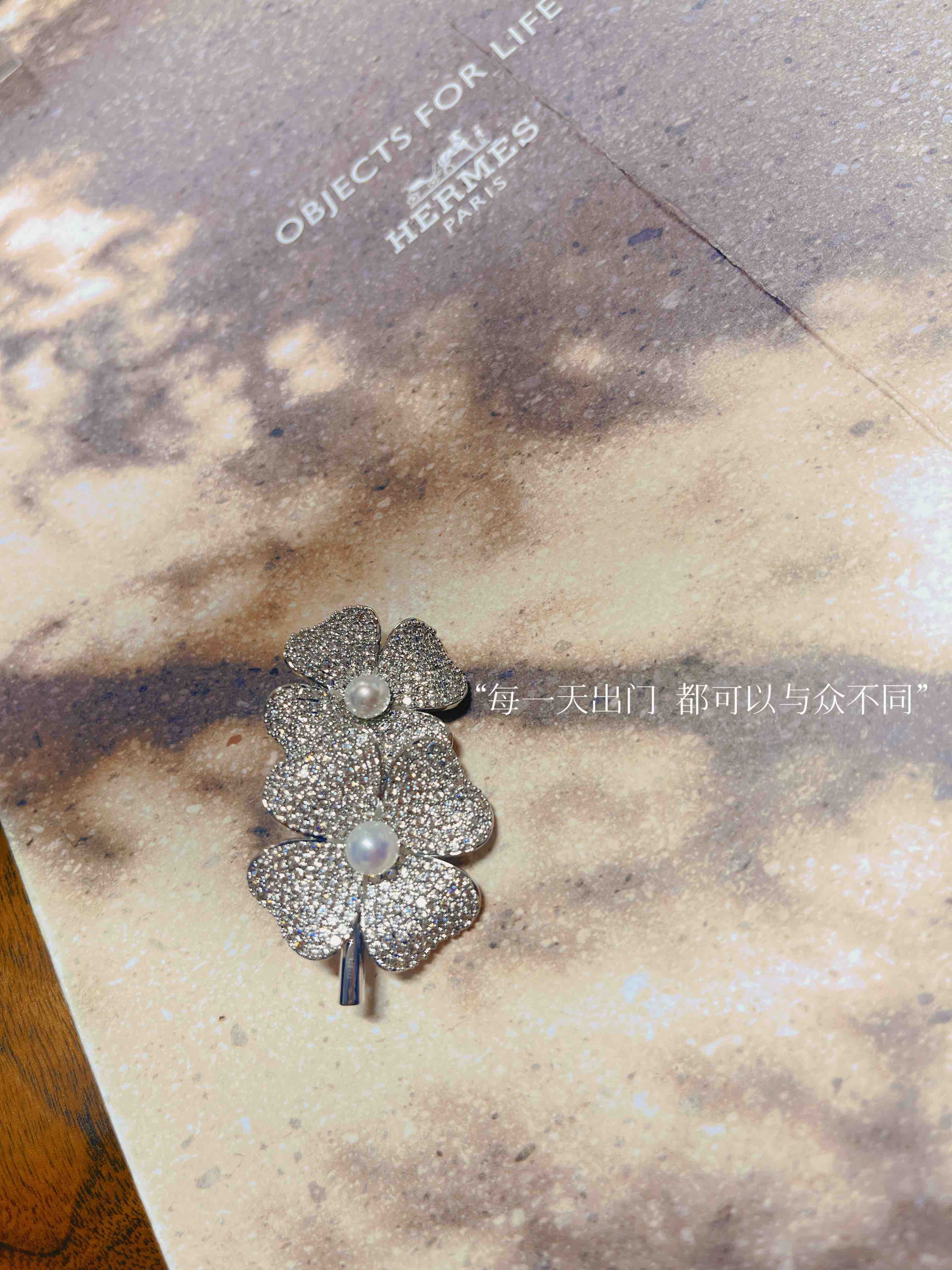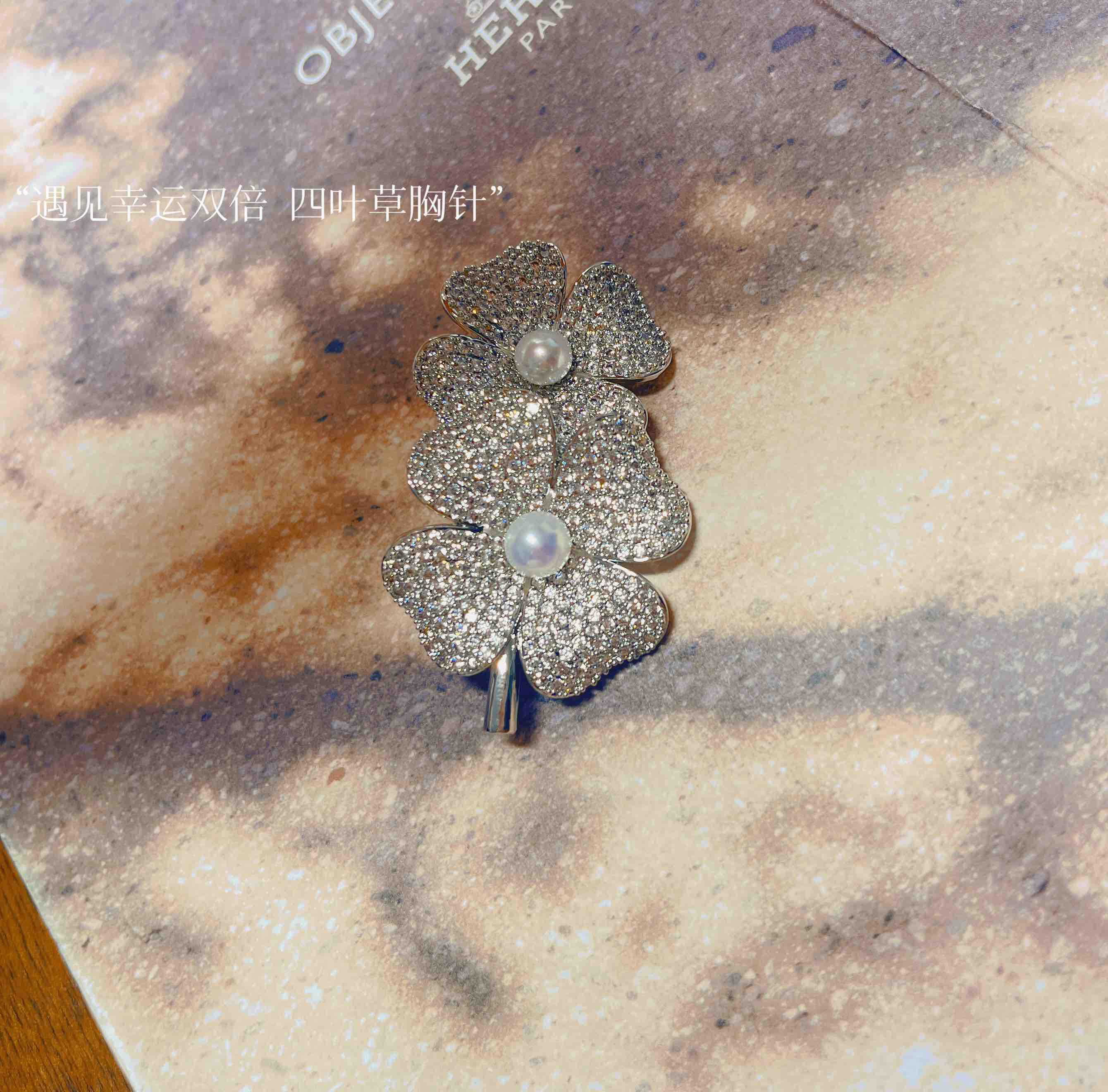 甄珠贝 孟女士同款 双四叶草胸针 精品强光小精品淡水珍珠2粒 超精致 全手工镶嵌