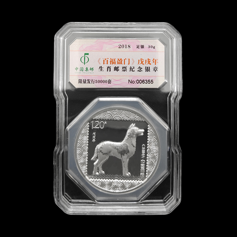 百福盈门狗年邮票银章 一套2枚银章 每枚含30克纯银