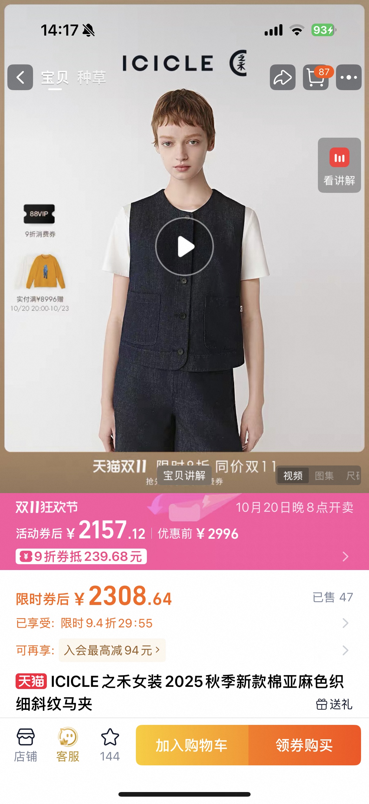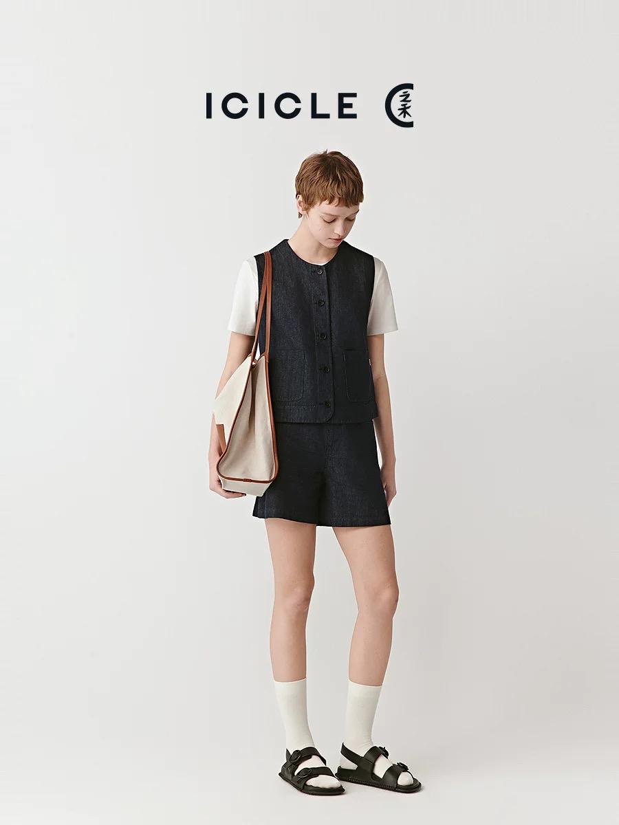 之禾女装2025秋季新款棉亚麻色织细斜纹马夹