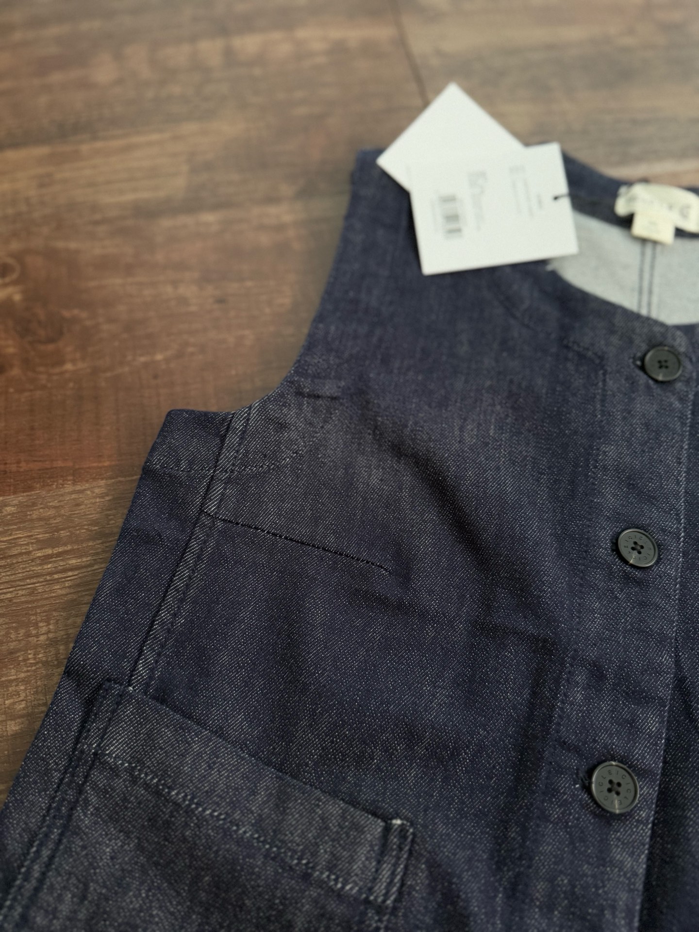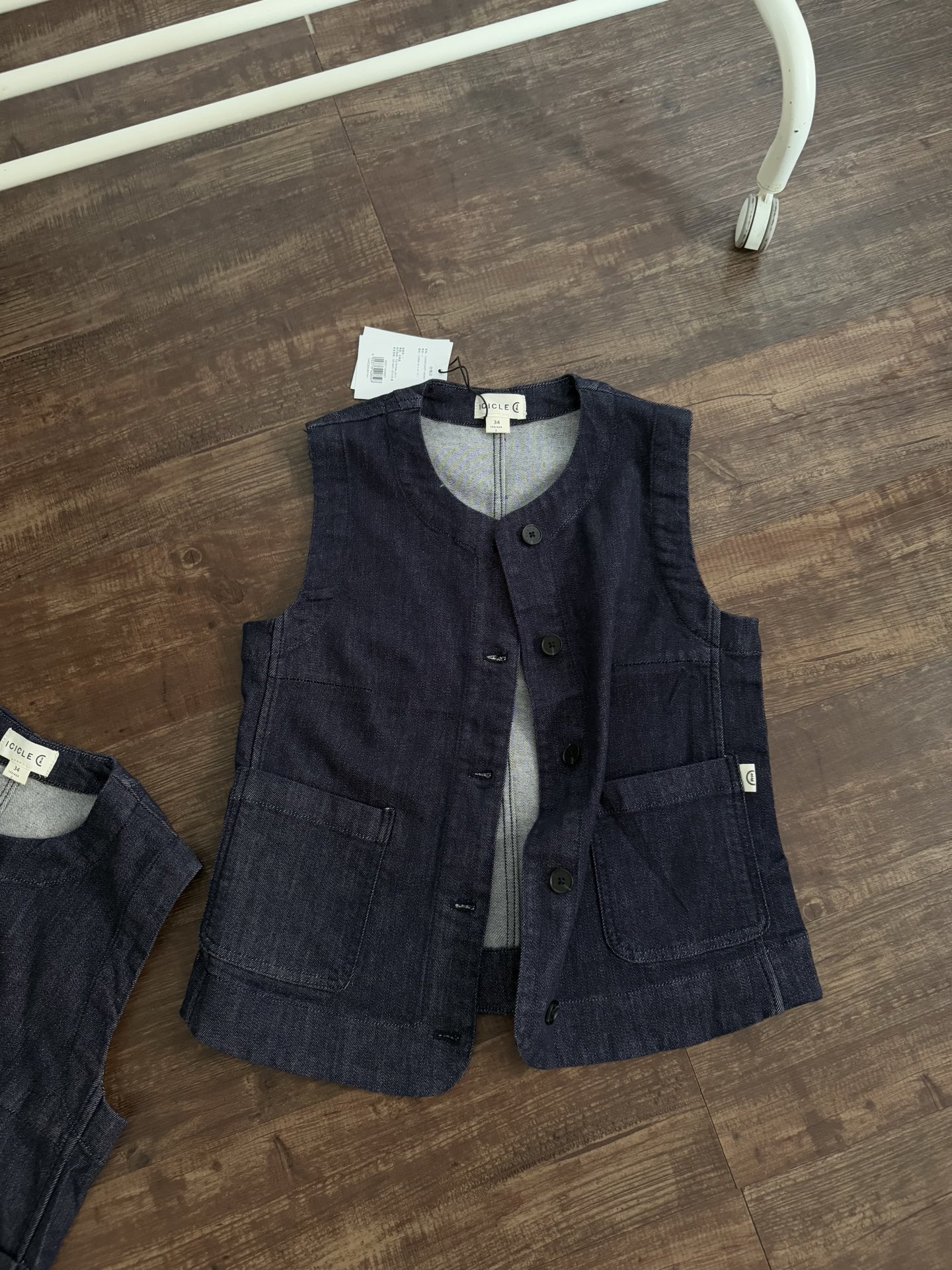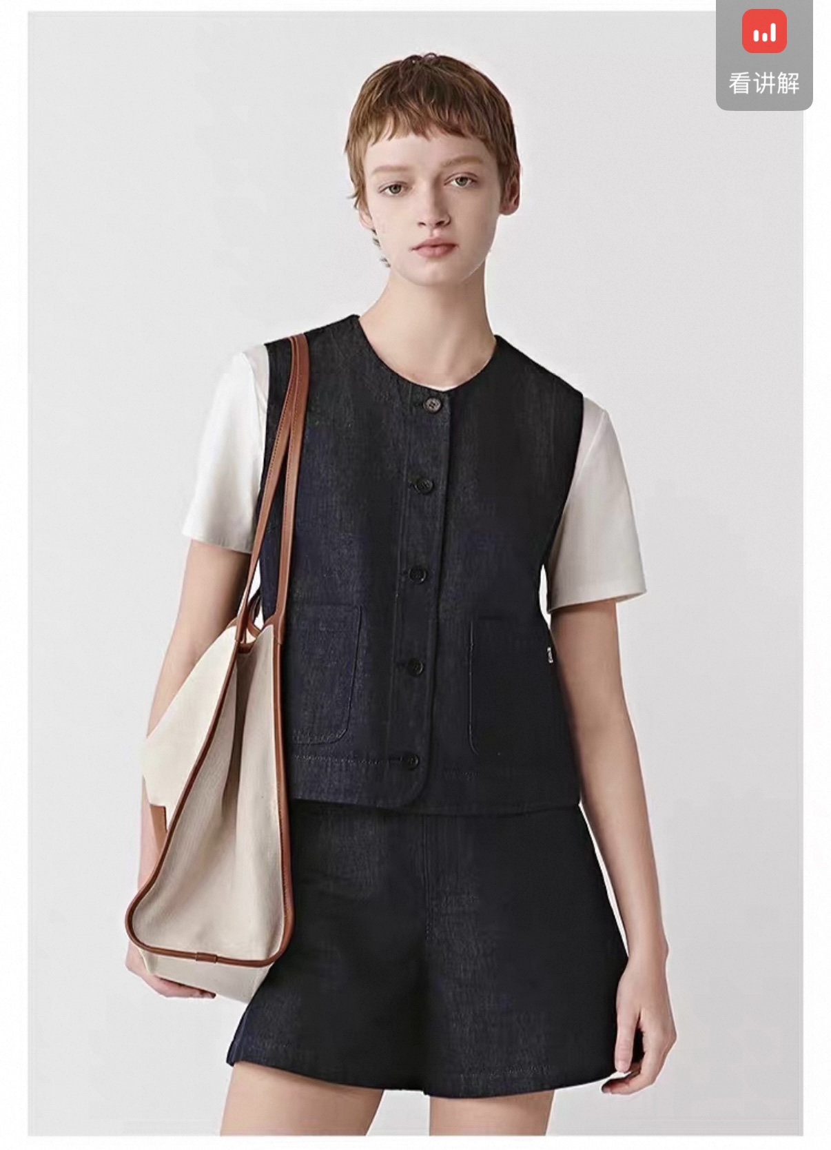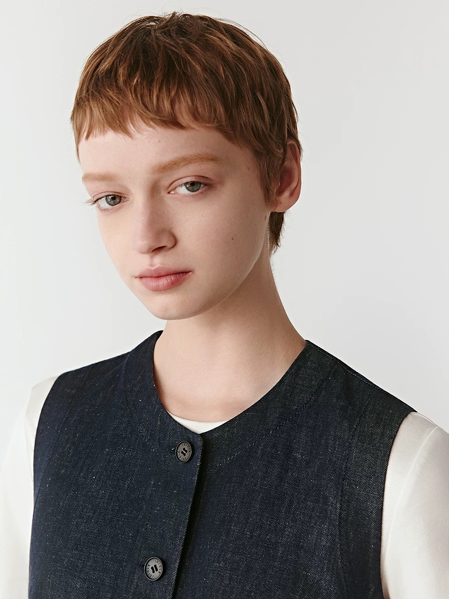 棉亚麻色织斜纹圆领背心马甲,仿牛仔质感!秋冬做叠穿搭配凹造型!高级感满满!内搭T恤,针织衫 打底衫 衬衫都可以噢!