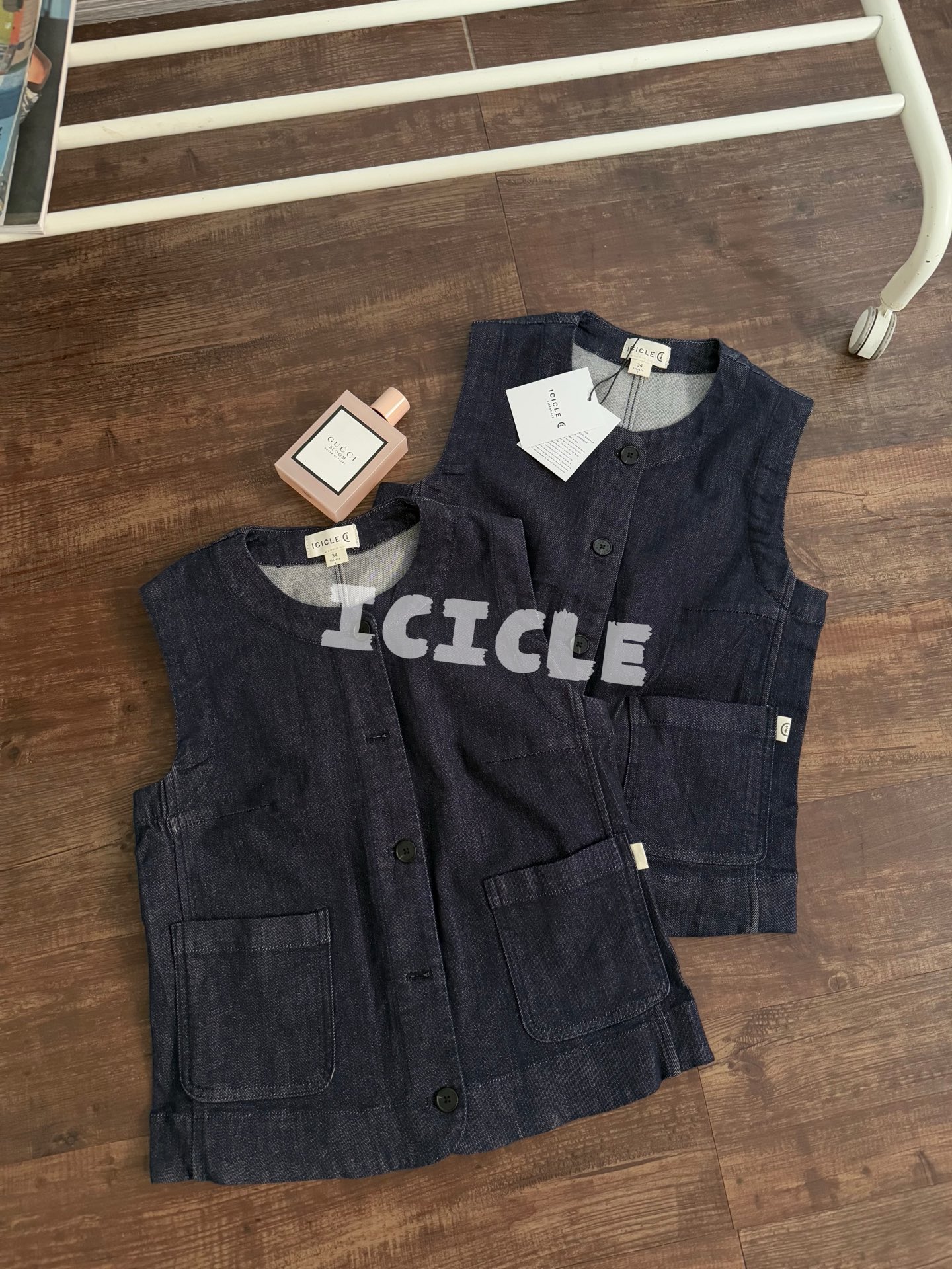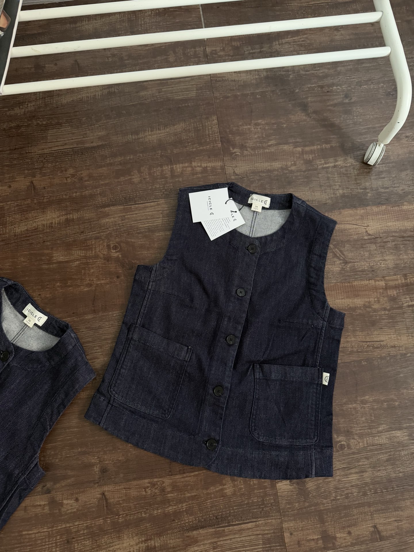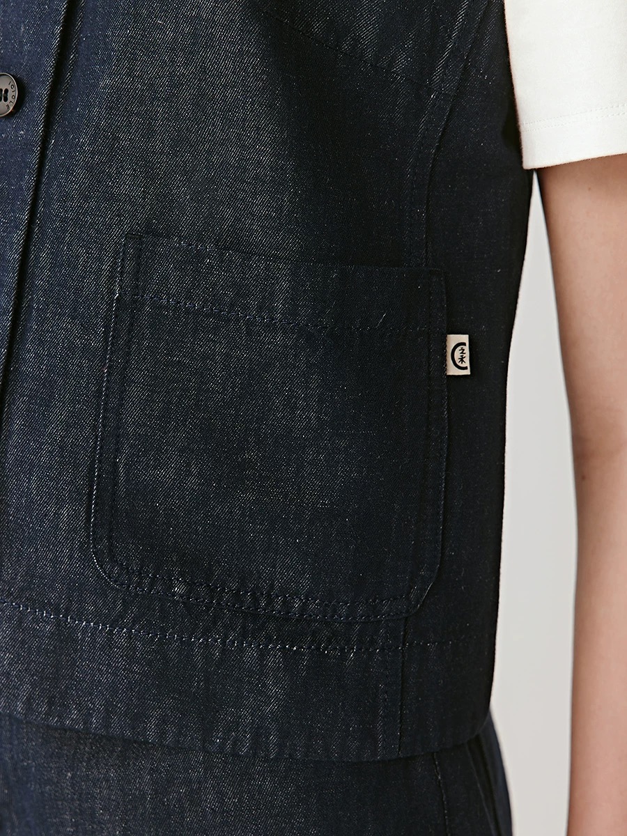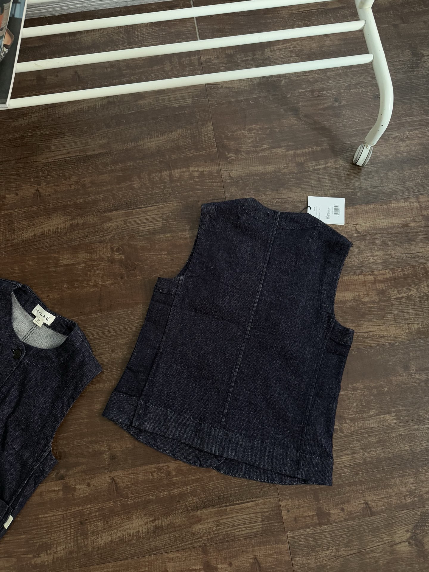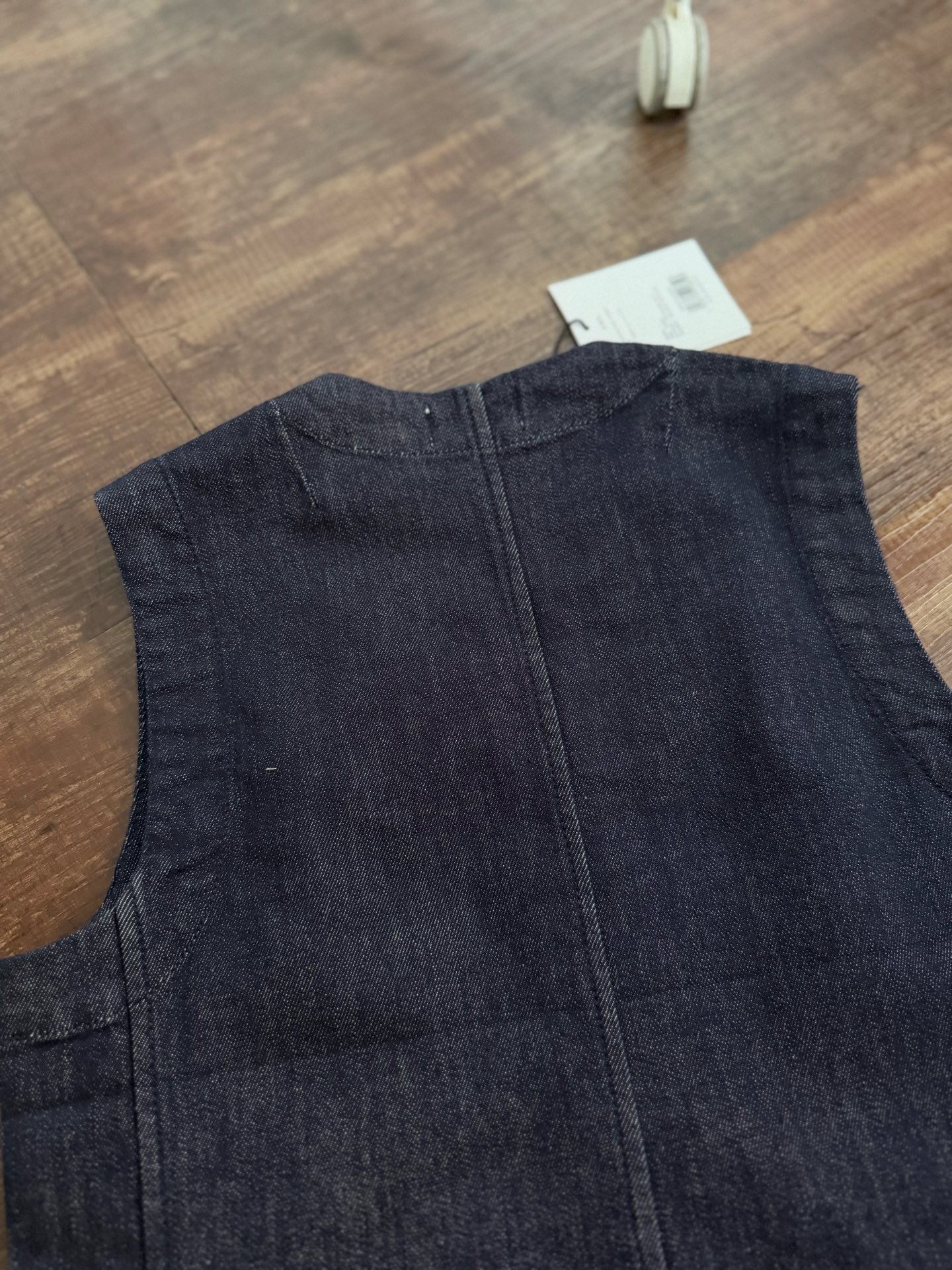 棉亚麻色织斜纹圆领背心马甲,仿牛仔质感!秋冬做叠穿搭配凹造型!高级感满满!内搭T恤,针织衫 打底衫 衬衫都可以噢!