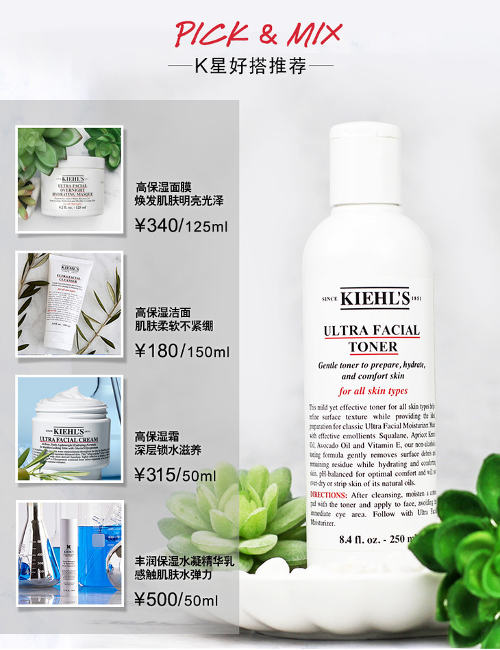 【精选套装】美国科颜氏(Kiehl's)高保湿精华爽肤水250ml(补水保湿 爽肤水 化妆水 美容液)