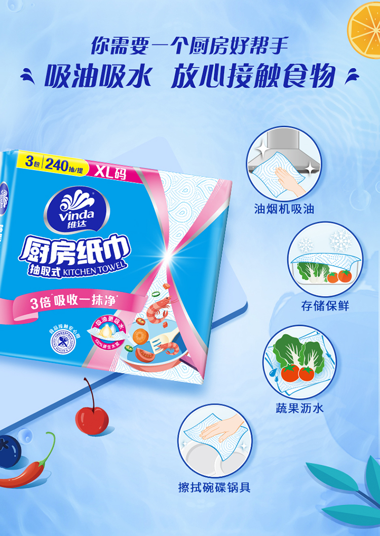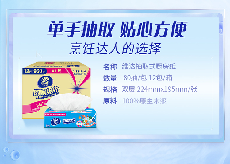 【官方包邮】维达家用实惠装厨房专用抽纸 12包/箱