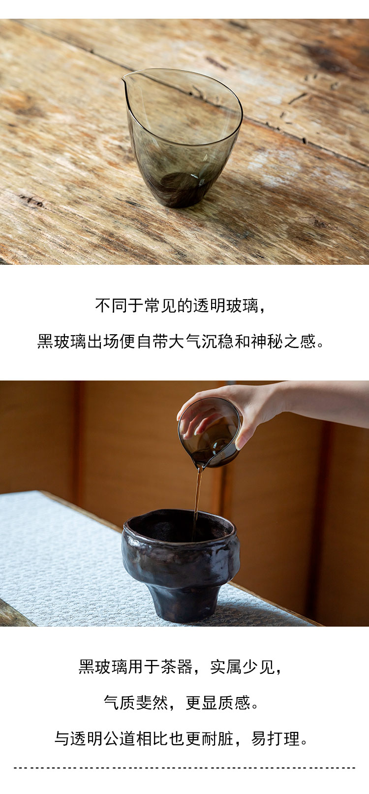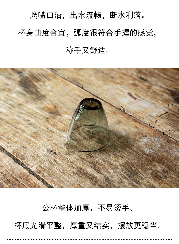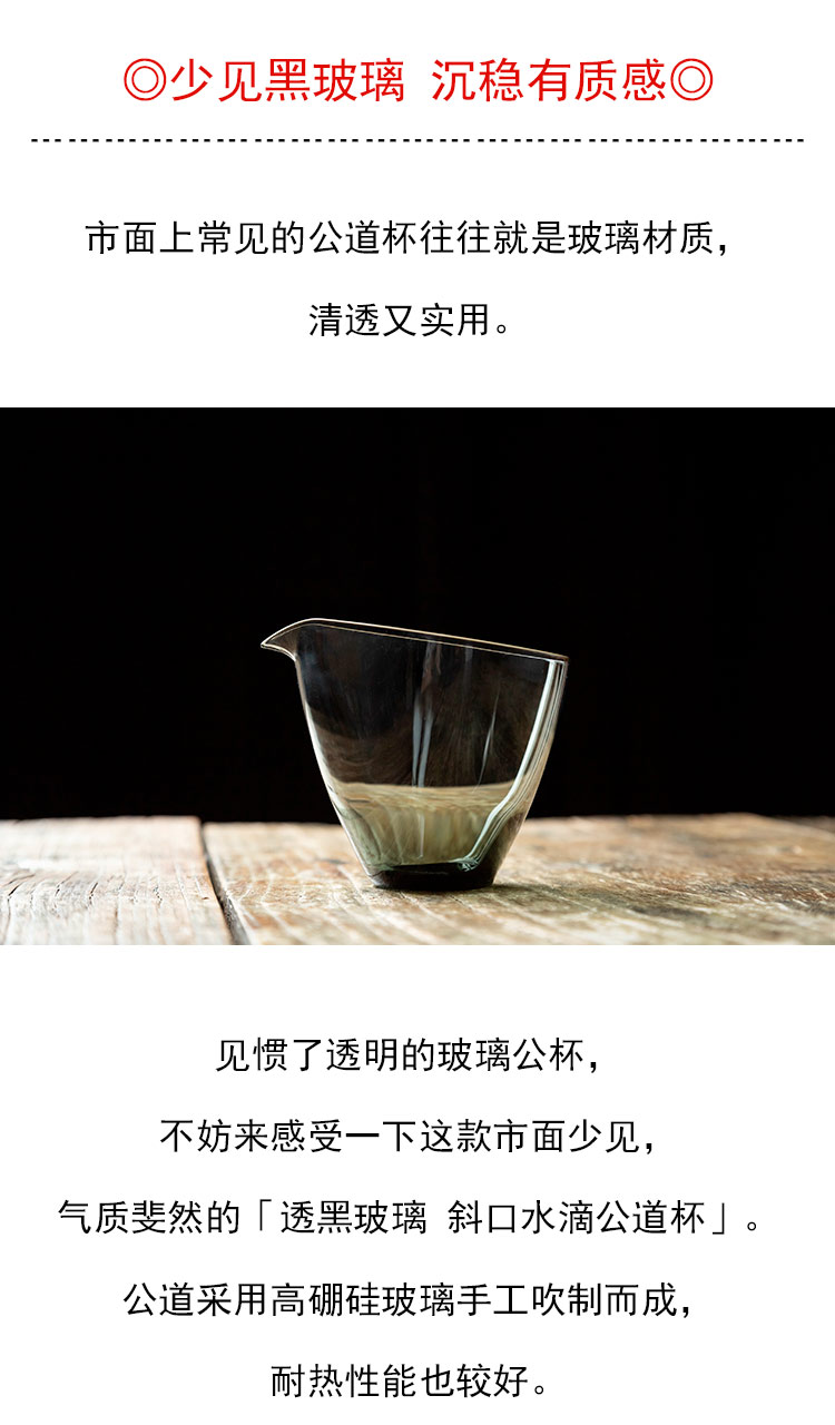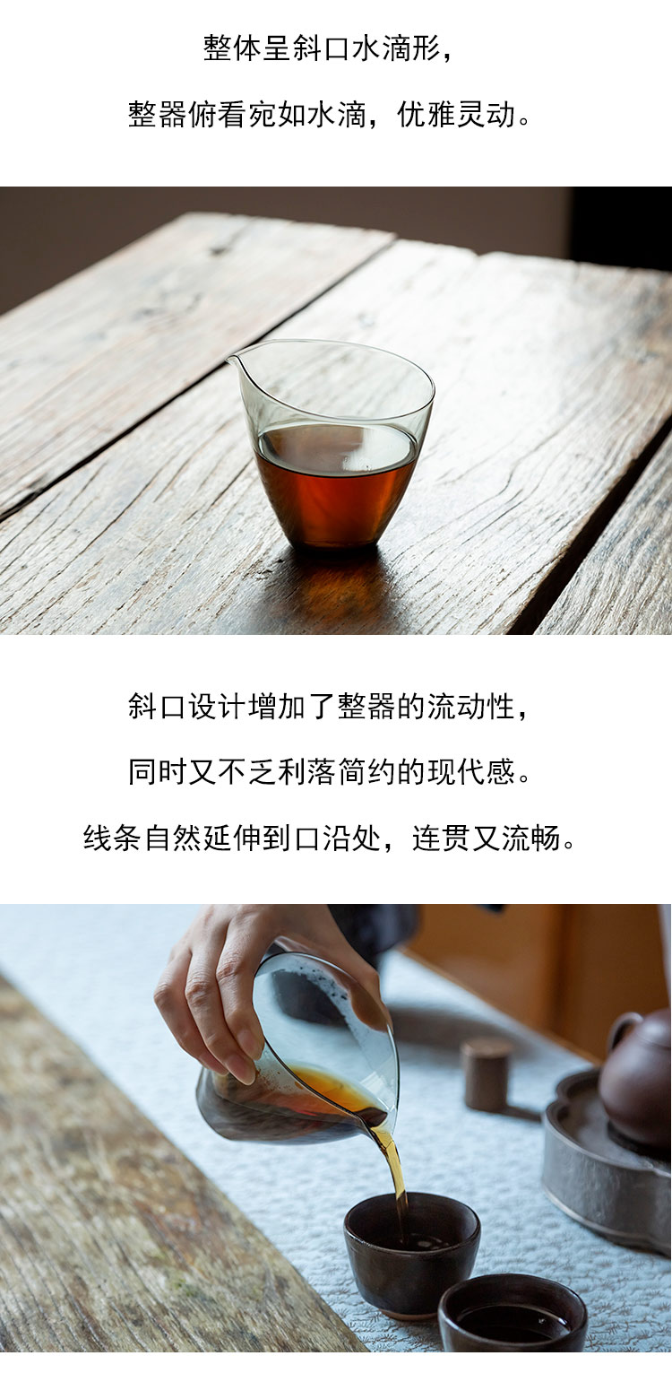 茶香记 透黑玻璃 斜口水滴公道杯 现代简约大气沉稳 实用易打