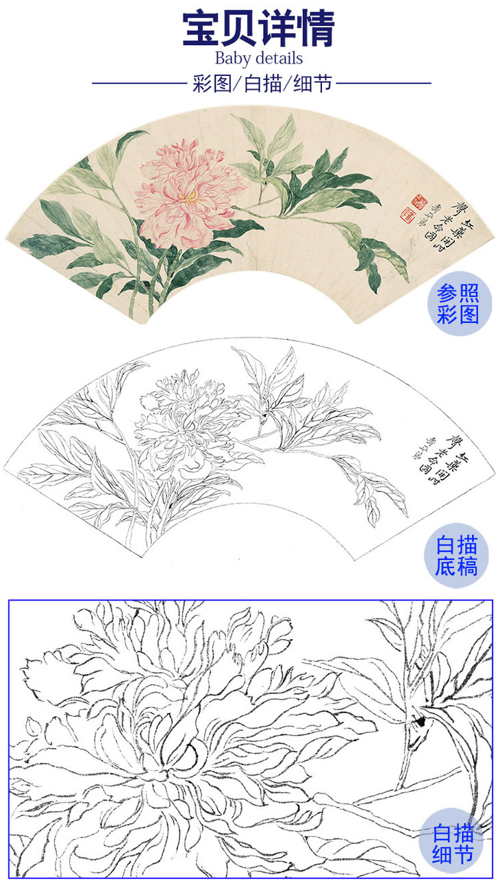 恽寿平没骨花鸟白描底稿-扇面小品-SP01