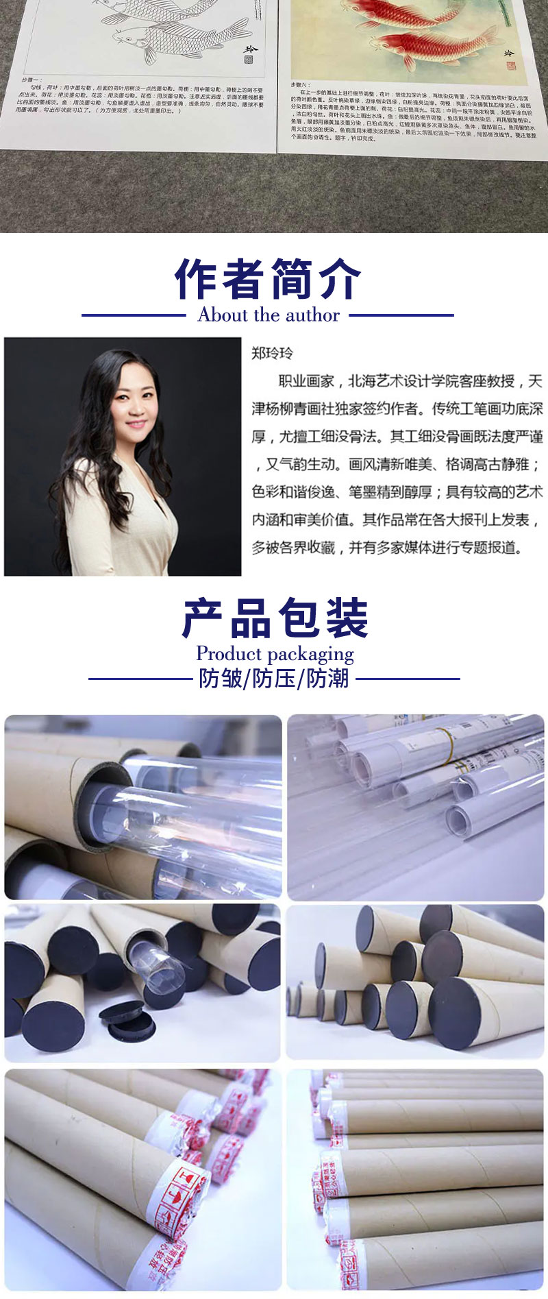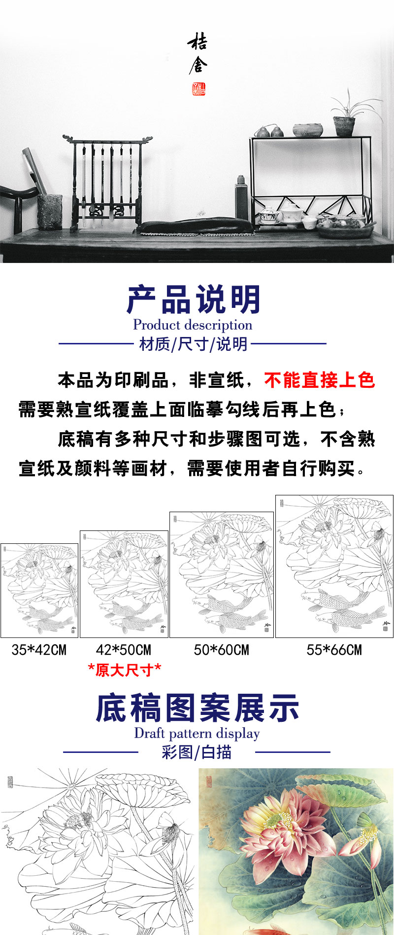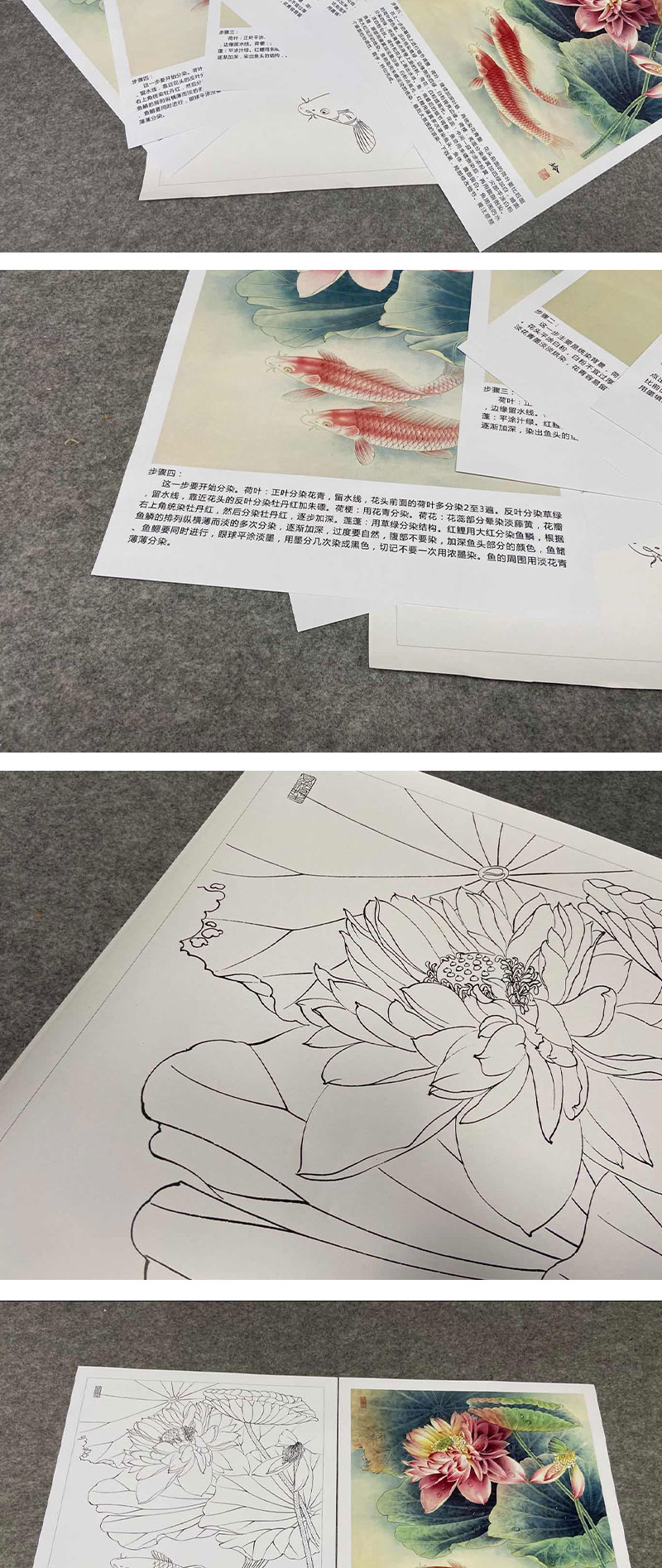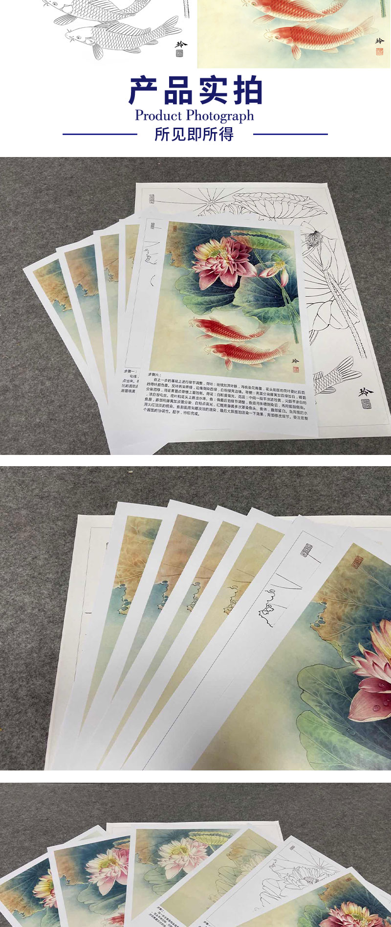 【有步骤、大彩图】郑玲玲工笔画白描底稿《清清荷韵悠悠我心》荷花鲤鱼初学者临摹花鸟线稿ZL06