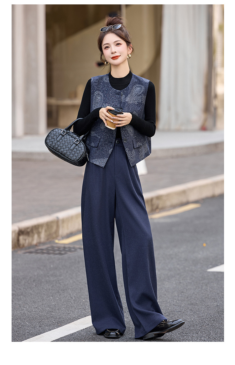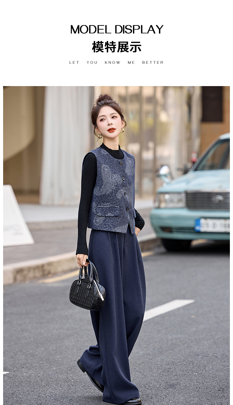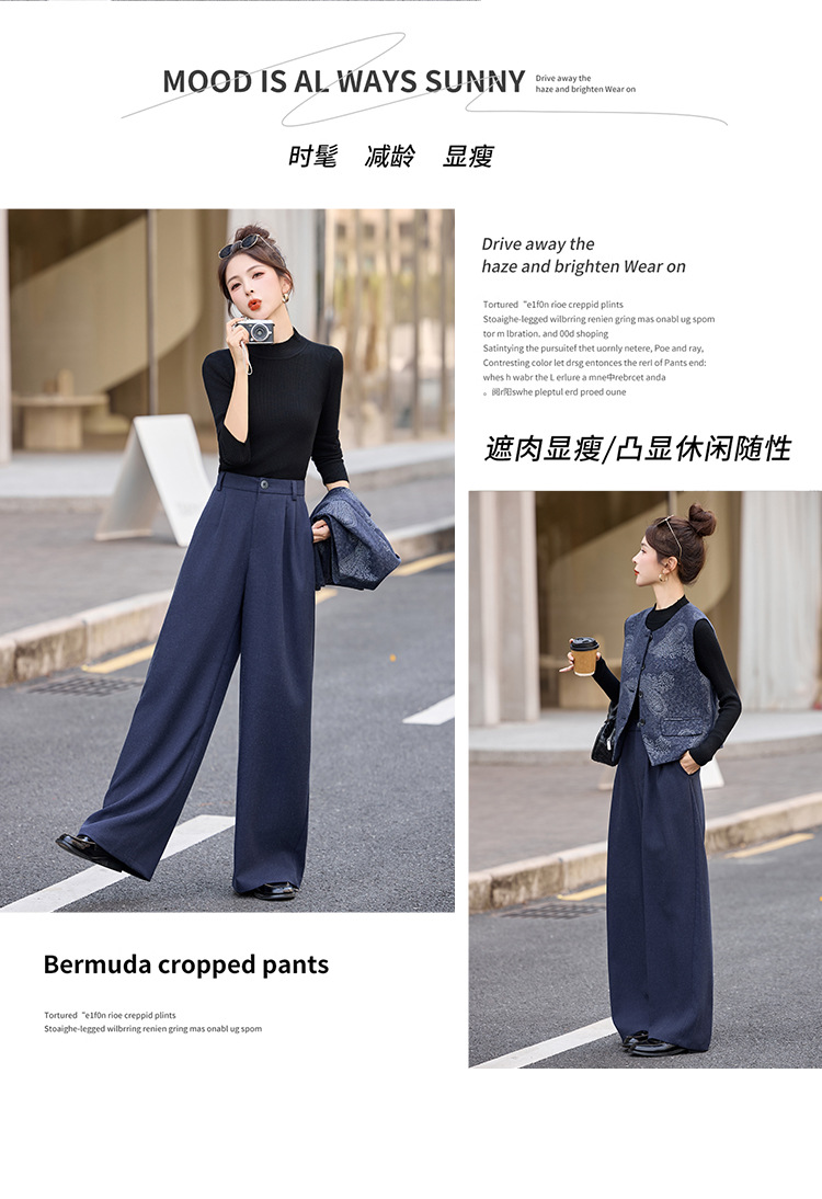 HR ZYF8090韩版简约长袖衬衫马甲阔腿裤三件套 商品图4