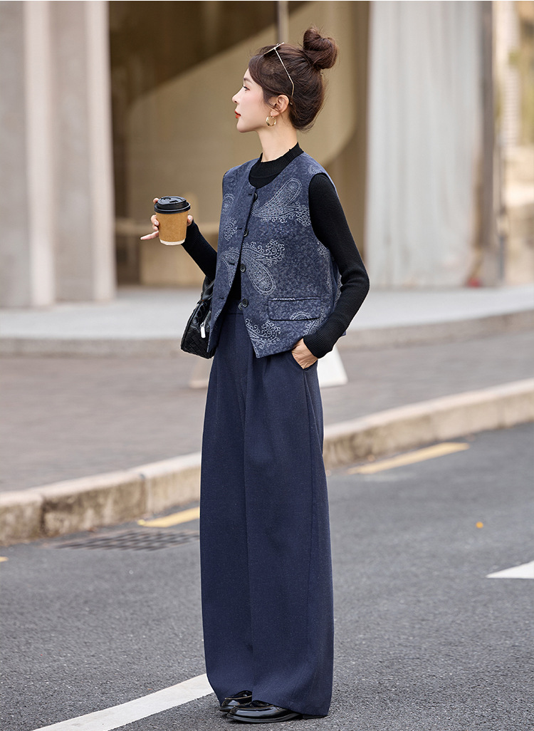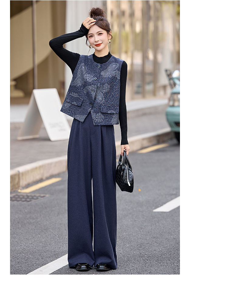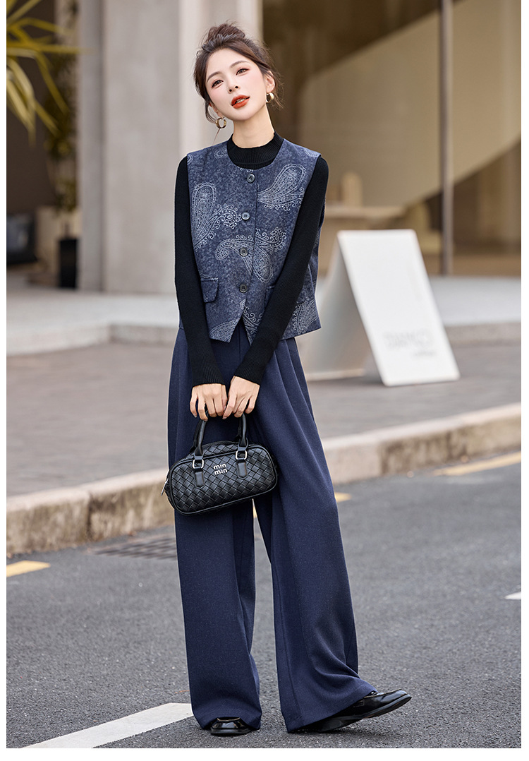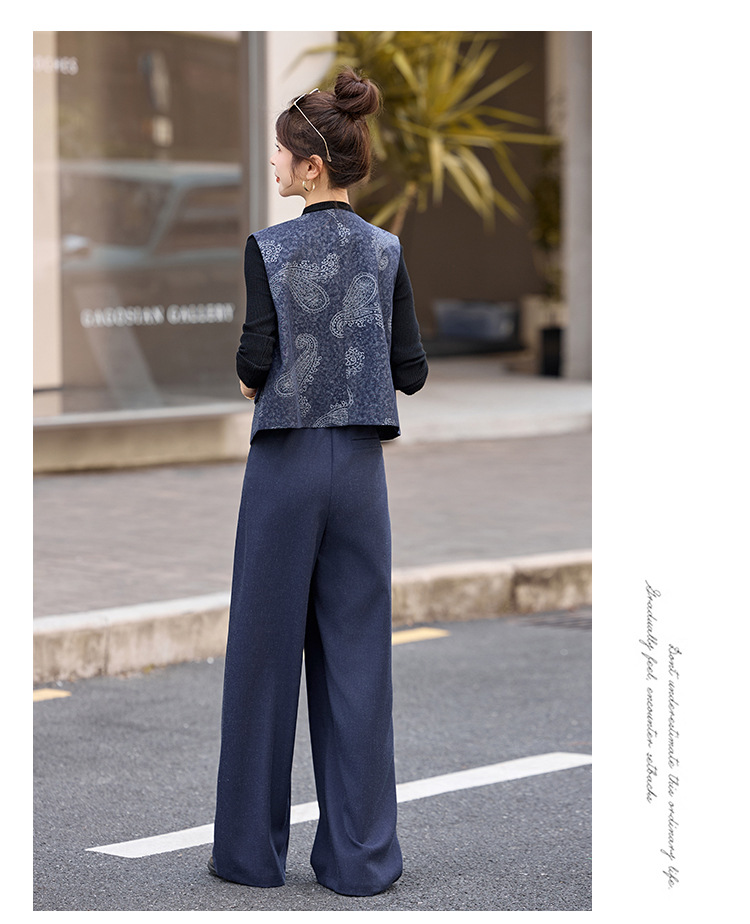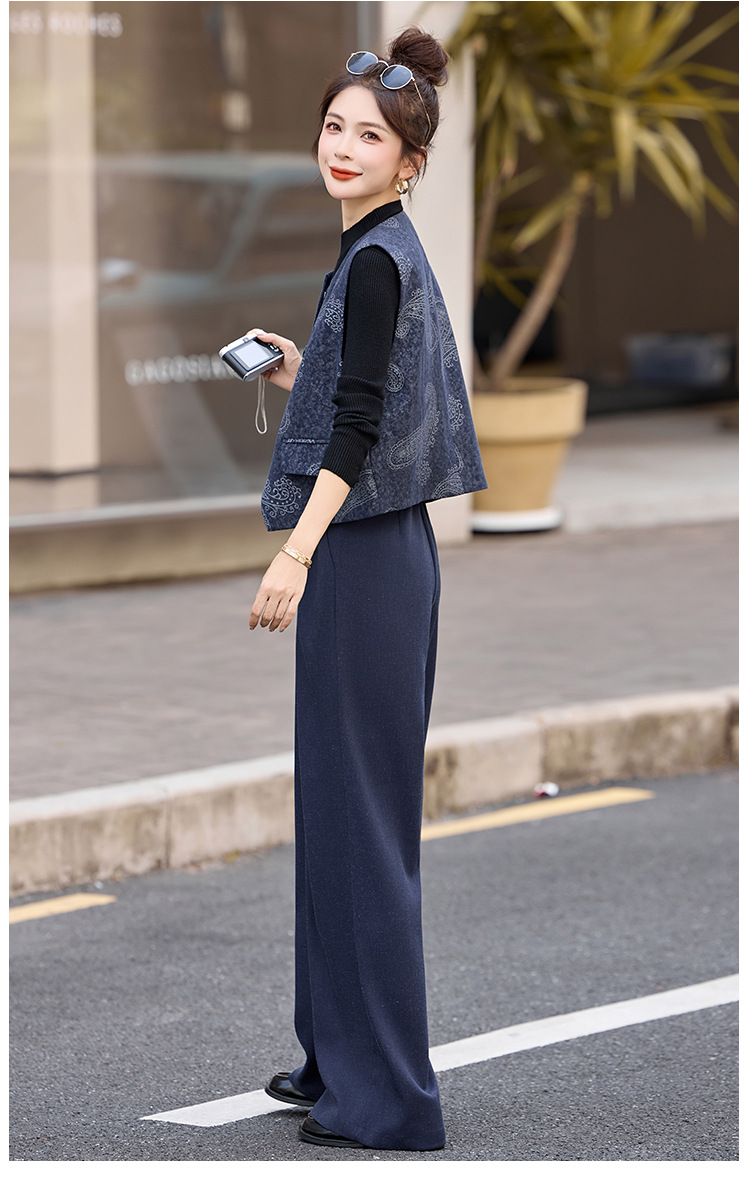 HR ZYF8090韩版简约长袖衬衫马甲阔腿裤三件套 商品图3
