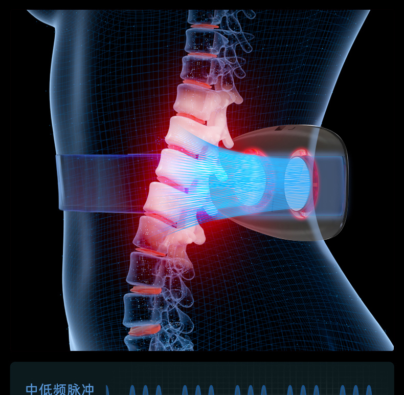 攀高中频腰部按摩器Waist1升级中低频款腰椎按摩仪 护腰带 腰间盘腰椎仪家用腰腹部按摩仪中频红光加热送礼好物