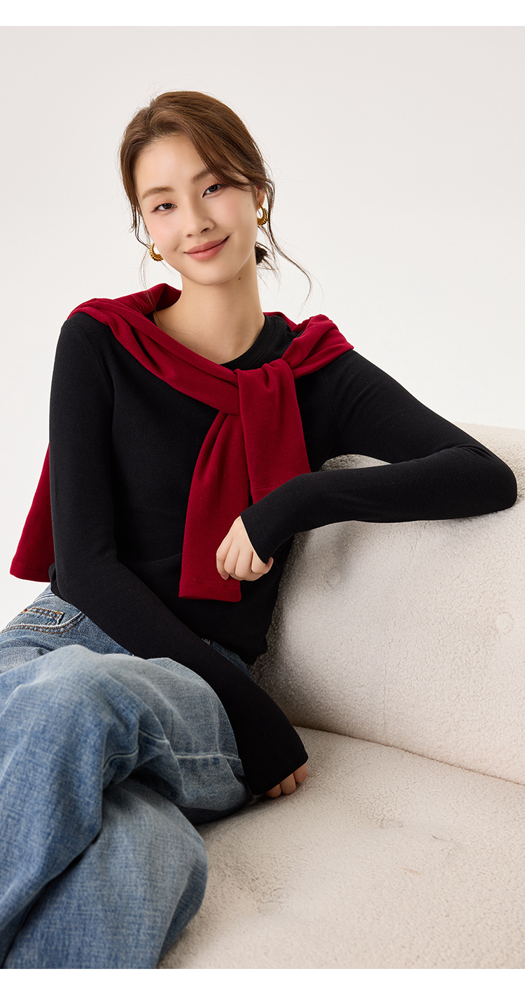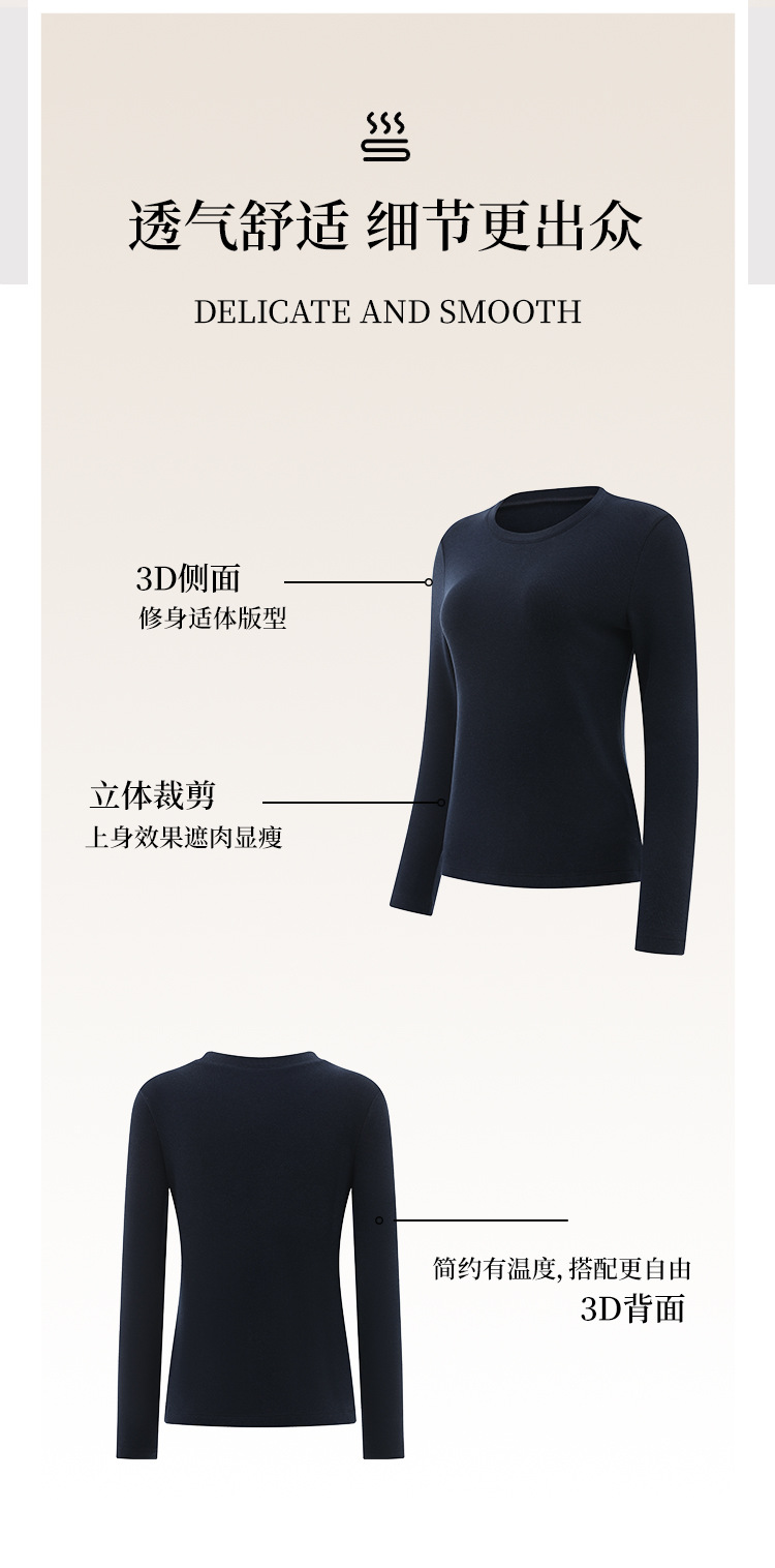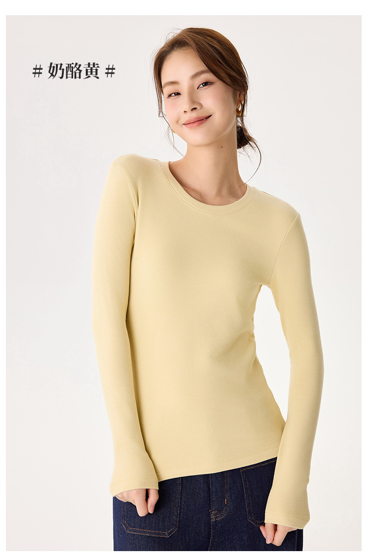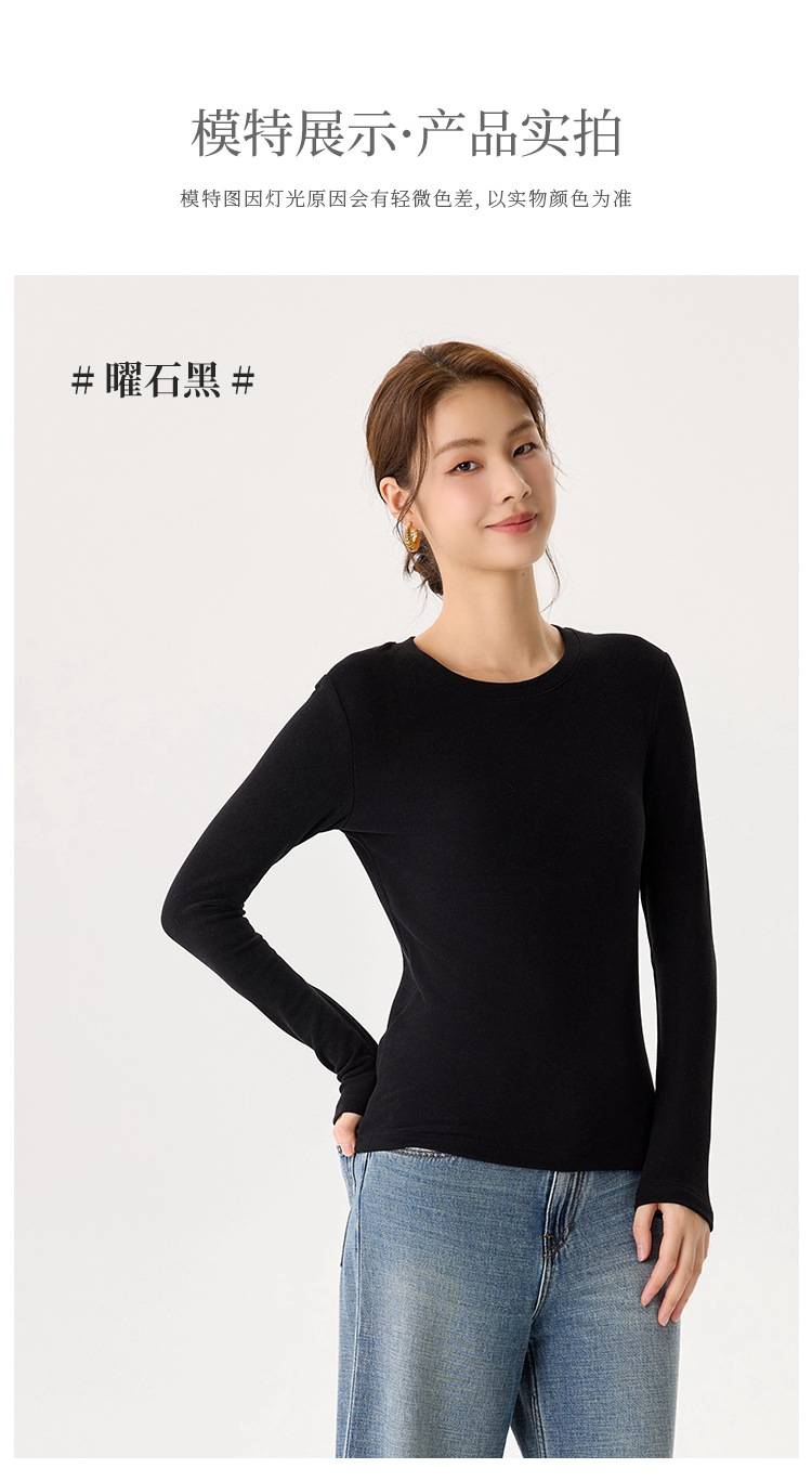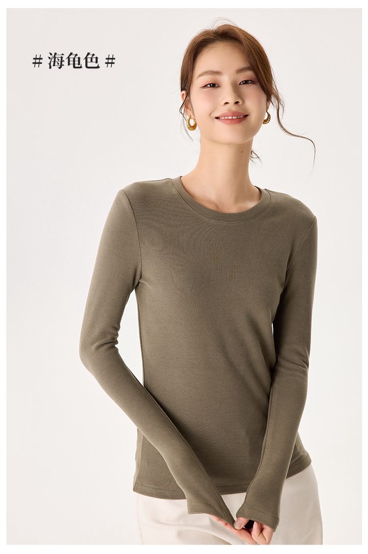 「自」全新升级【铂金会员119/天猫159/差价40】(22245)洛诗琳新款圆领德绒打底衫2025秋冬修身保暖百搭长袖T恤女