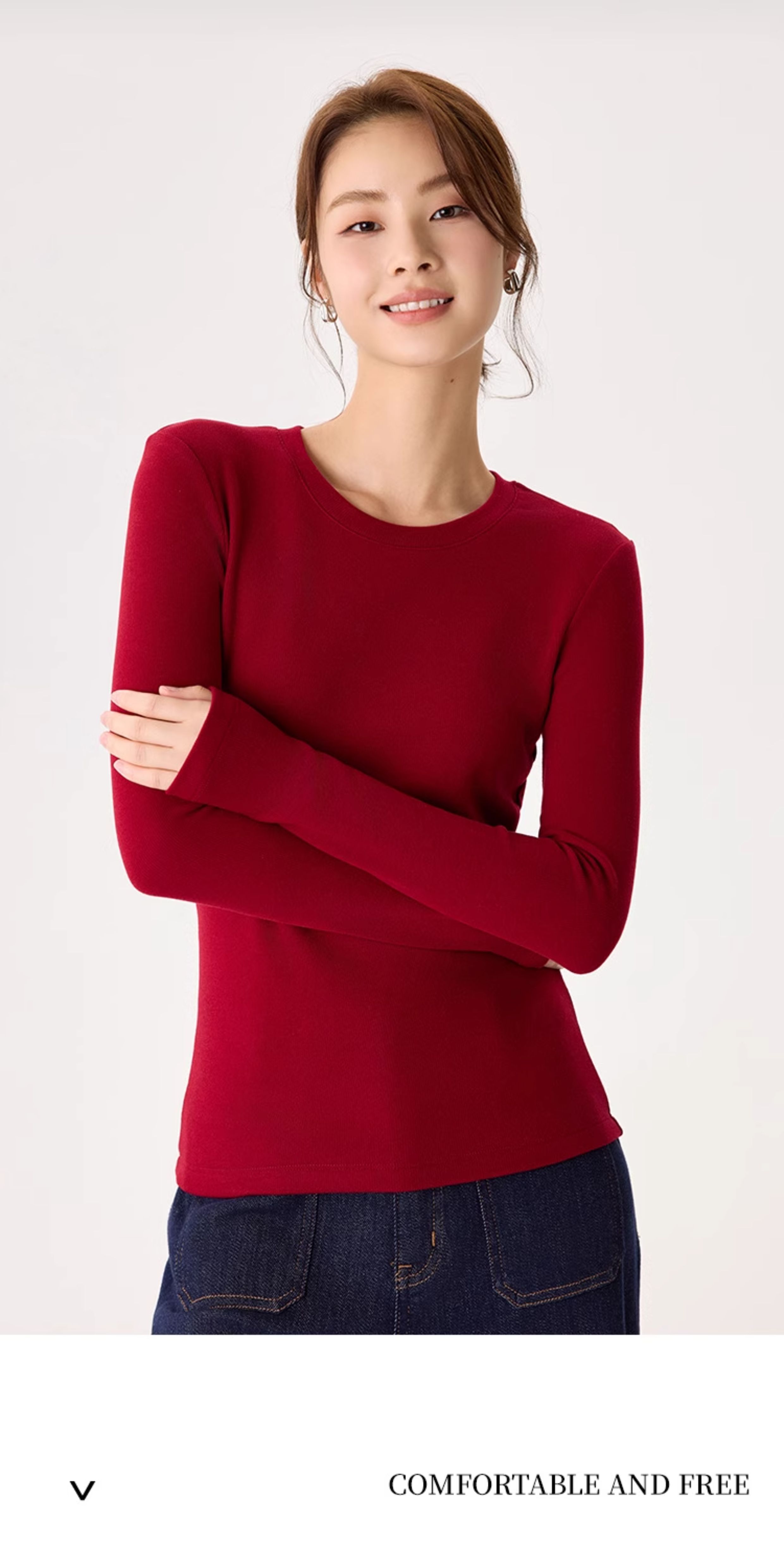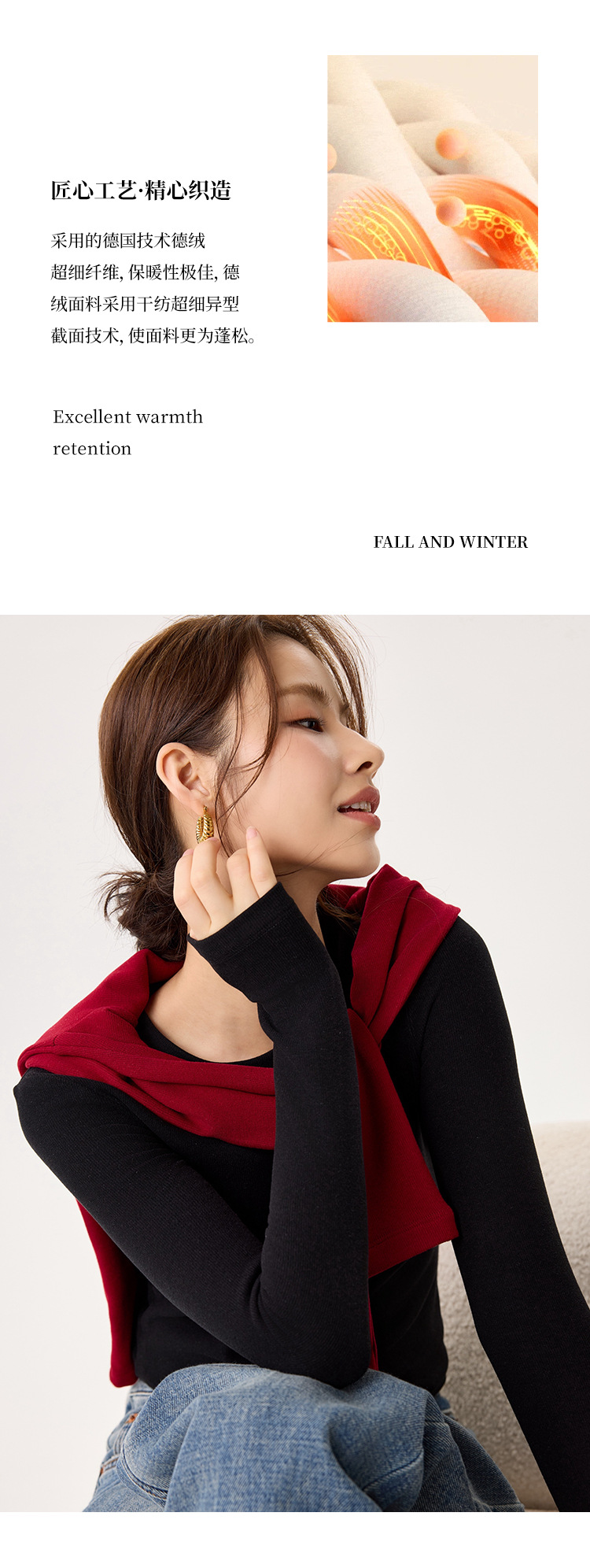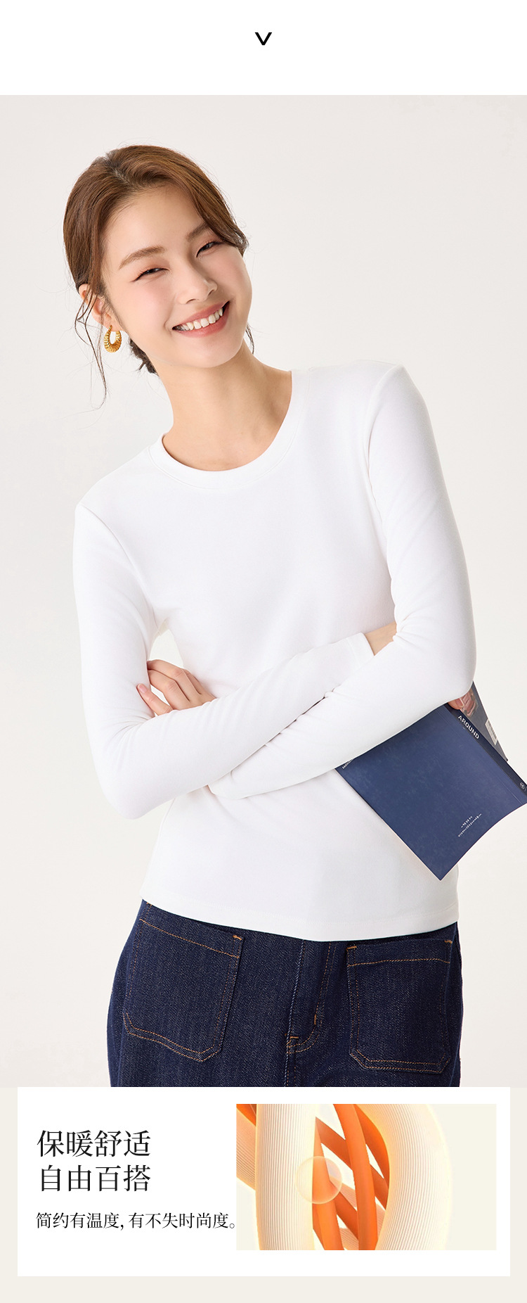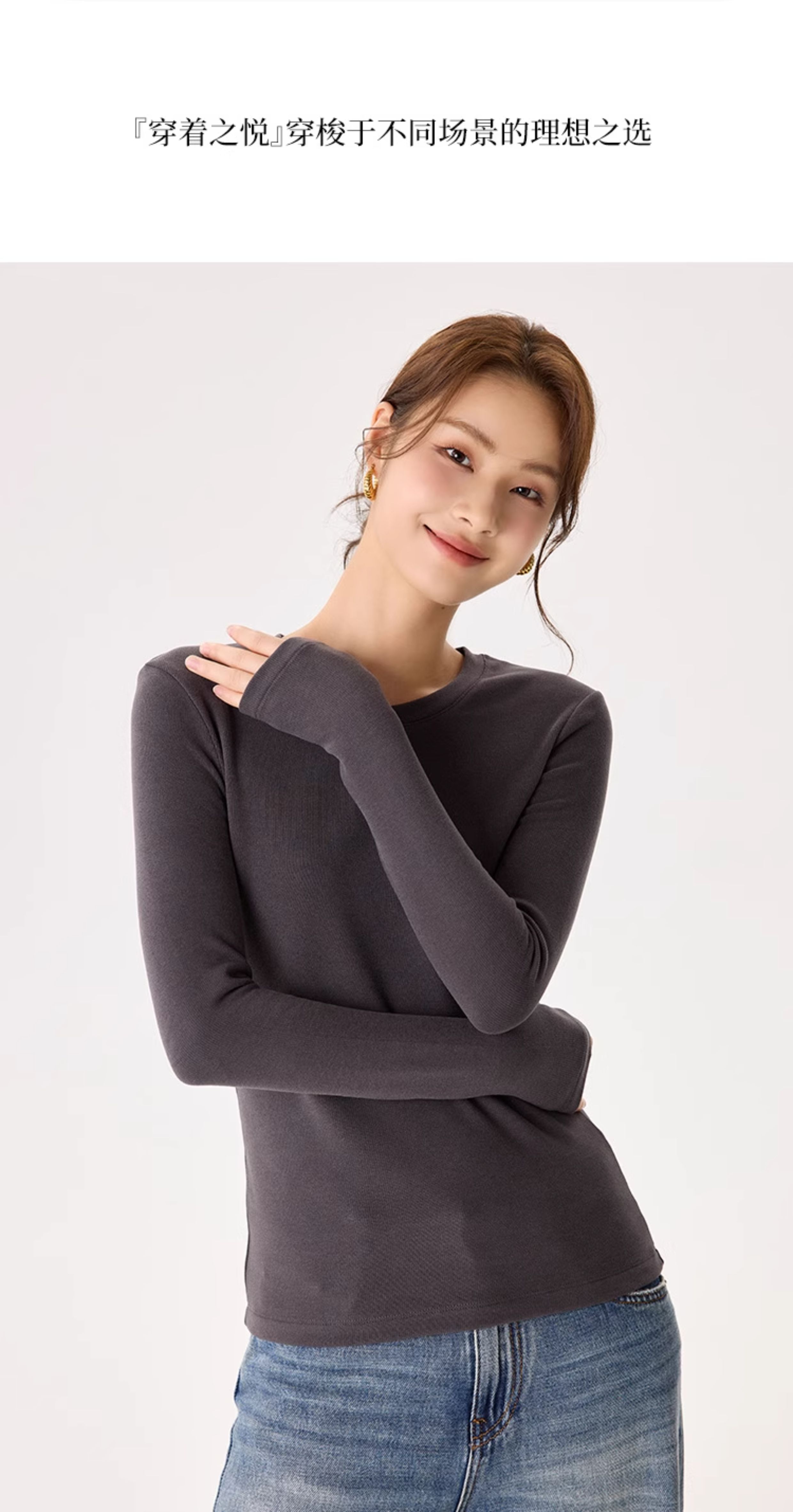 「自」全新升级【铂金会员119/天猫159/差价40】(22245)洛诗琳新款圆领德绒打底衫2025秋冬修身保暖百搭长袖T恤女