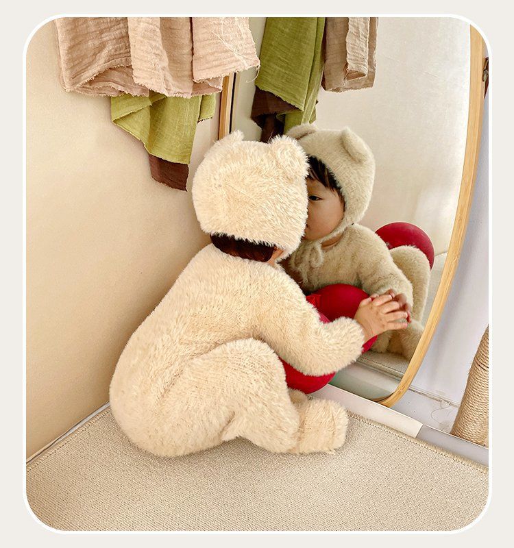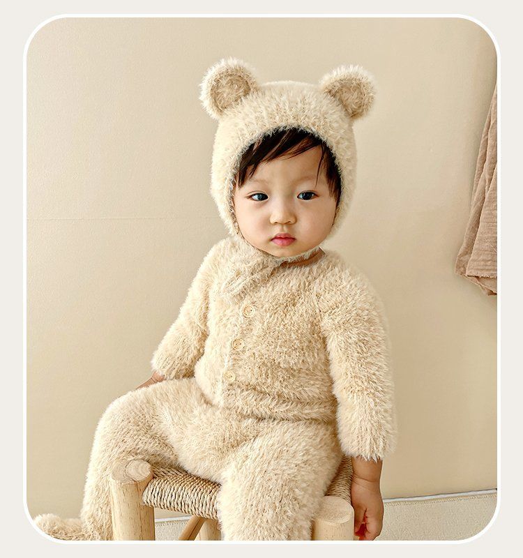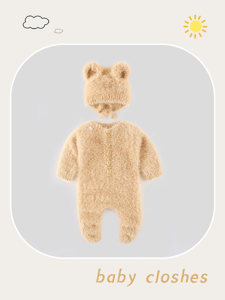 新生婴儿连体衣春秋毛茸茸套装宝宝秋装毛绒衣服超萌满月哈衣爬服