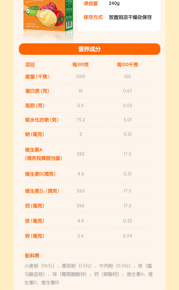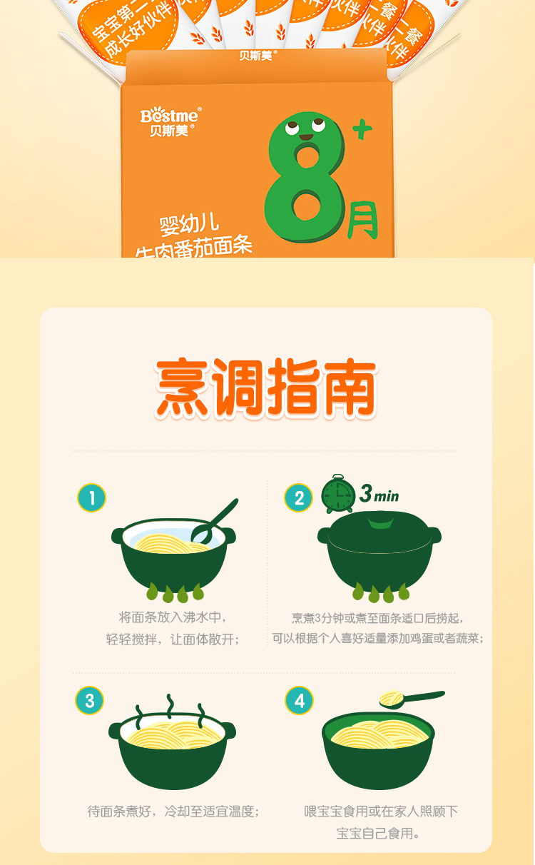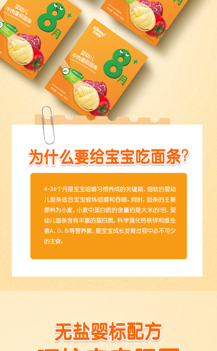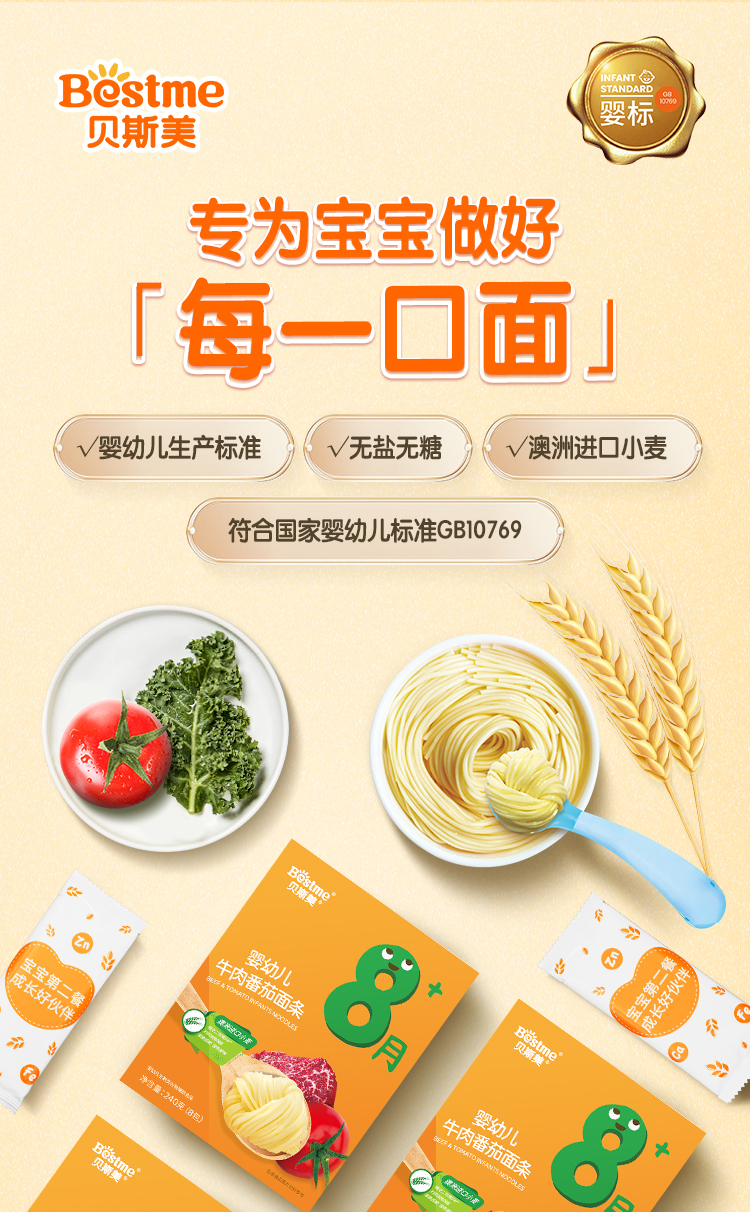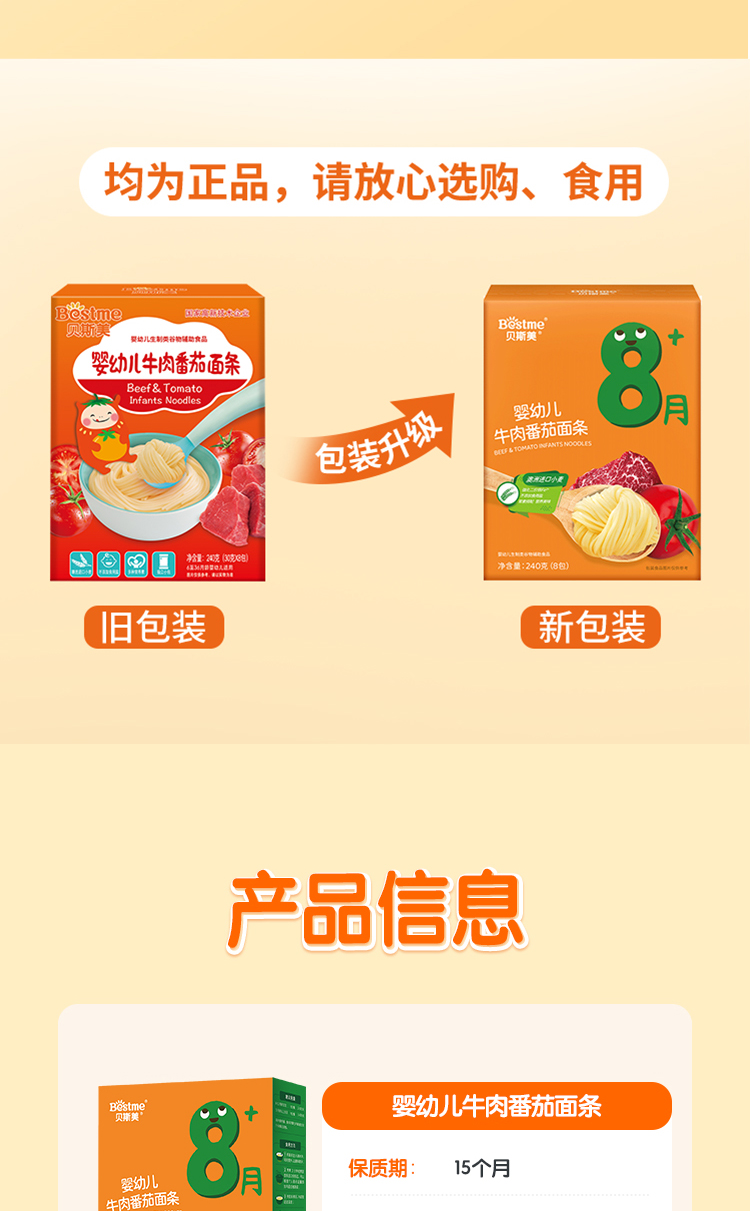 贝斯美婴幼儿牛肉番茄面条240g