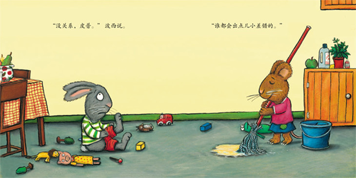 《尿裤子》:皮普去波西家玩,他们一会儿带玩具宝宝散步,一会儿搭积木。玩累了,他们就停下来吃东西。皮普觉得口渴,喝了很多很多水。他们玩得太尽兴啦,皮普竟然忘记去尿尿了!结果……真的好尴尬。这可怎么办呢?波西会怎样帮助皮普呢?成长中时常会出现小小的烦恼,需要打扫和清理,也需要朋友间的体谅与关心。