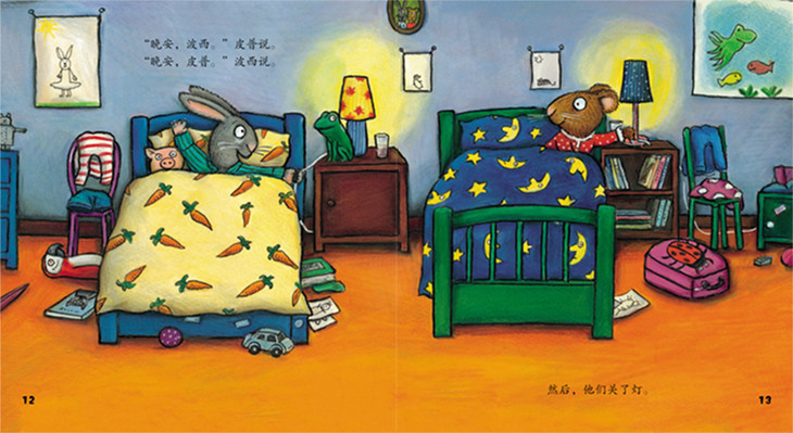 《心爱的玩具》:波西要去皮普家住一个晚上。她带了很多很多东西:睡衣、玩具、零食……他们在一起度过了特别开心的一天,玩得高兴极了。可是,临睡觉的时候,波西发现自己忘了带心爱的青蛙玩具。没有青蛙玩具,波西怎么也睡不着……她该怎么办?皮普又会做些什么?