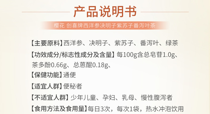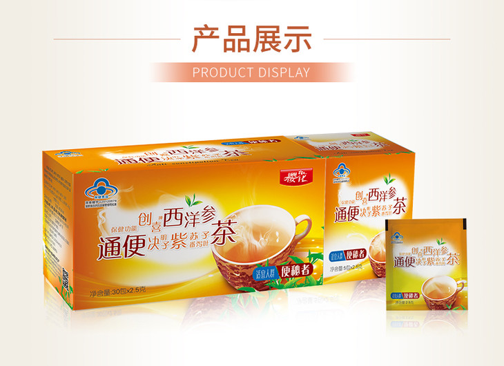 樱花通便茶 2.5g/袋*30袋+5袋 西洋参决明子紫苏子番泻叶绿茶