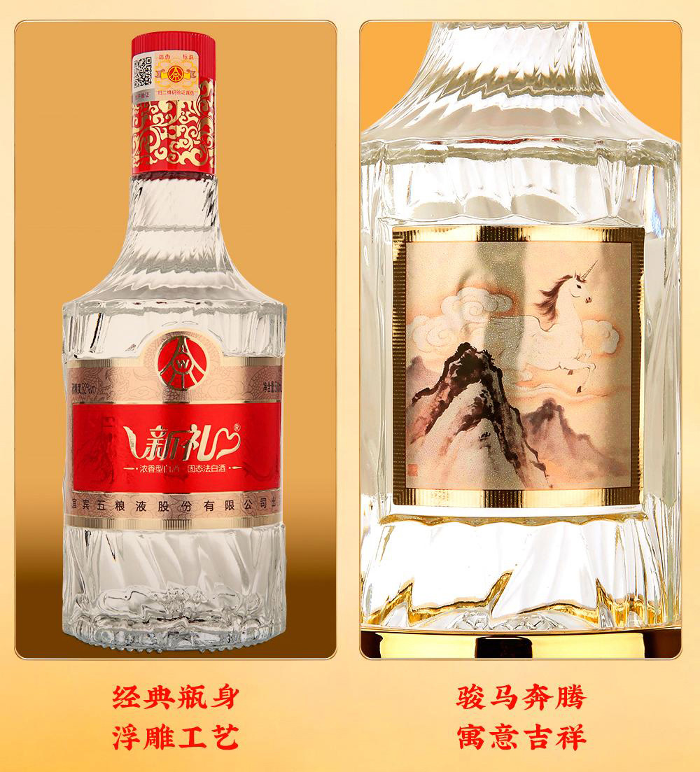 【五粮液总厂出品 融入生肖马 纯粮酿造】五粮液新礼酒52度浓香型(500ml*6)亚克力罩