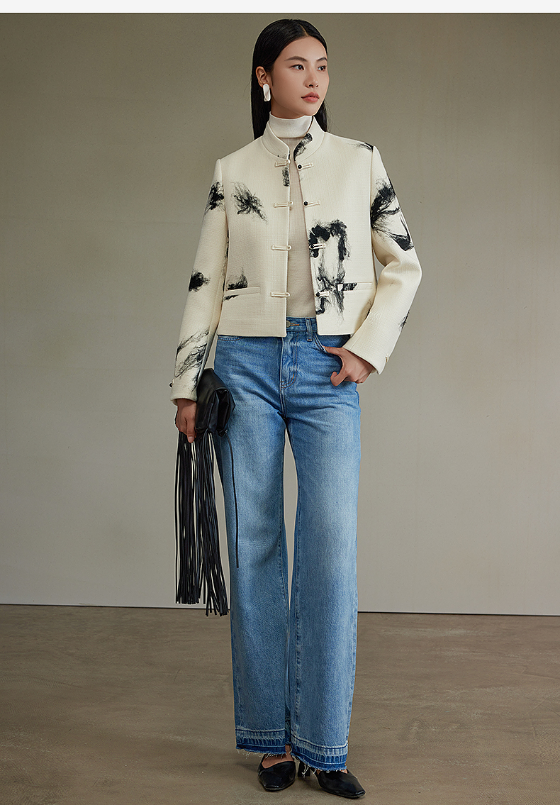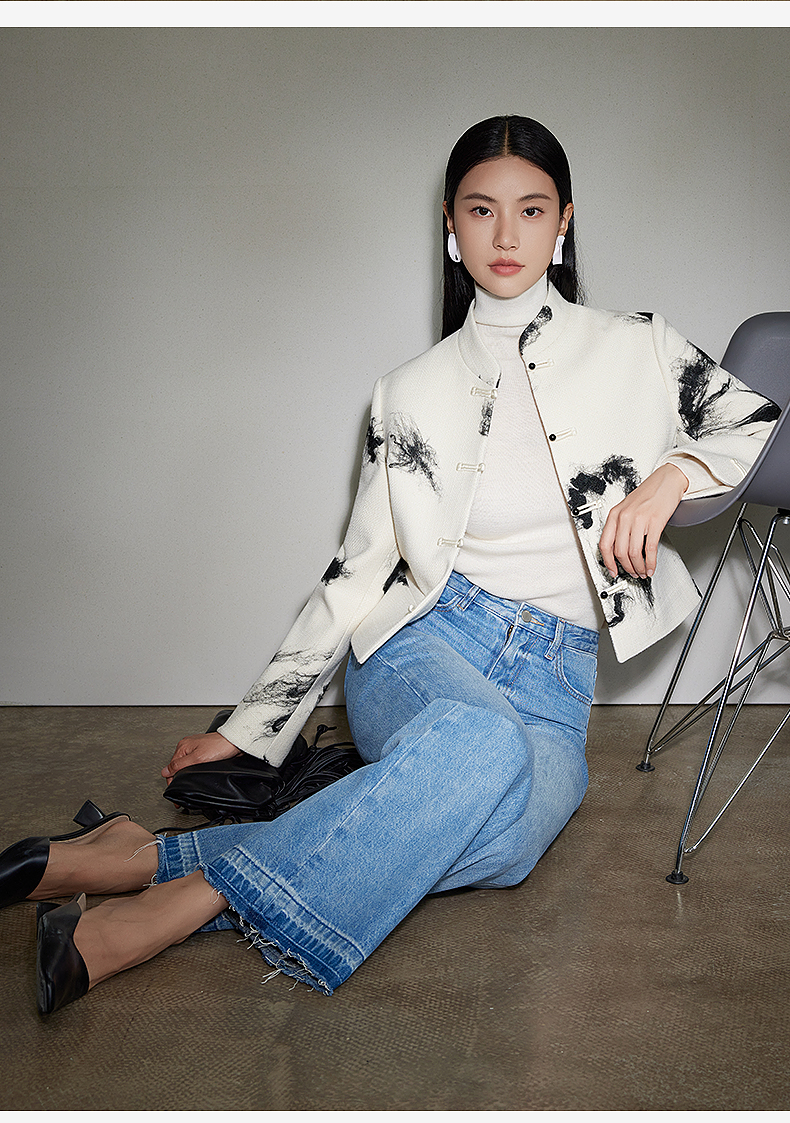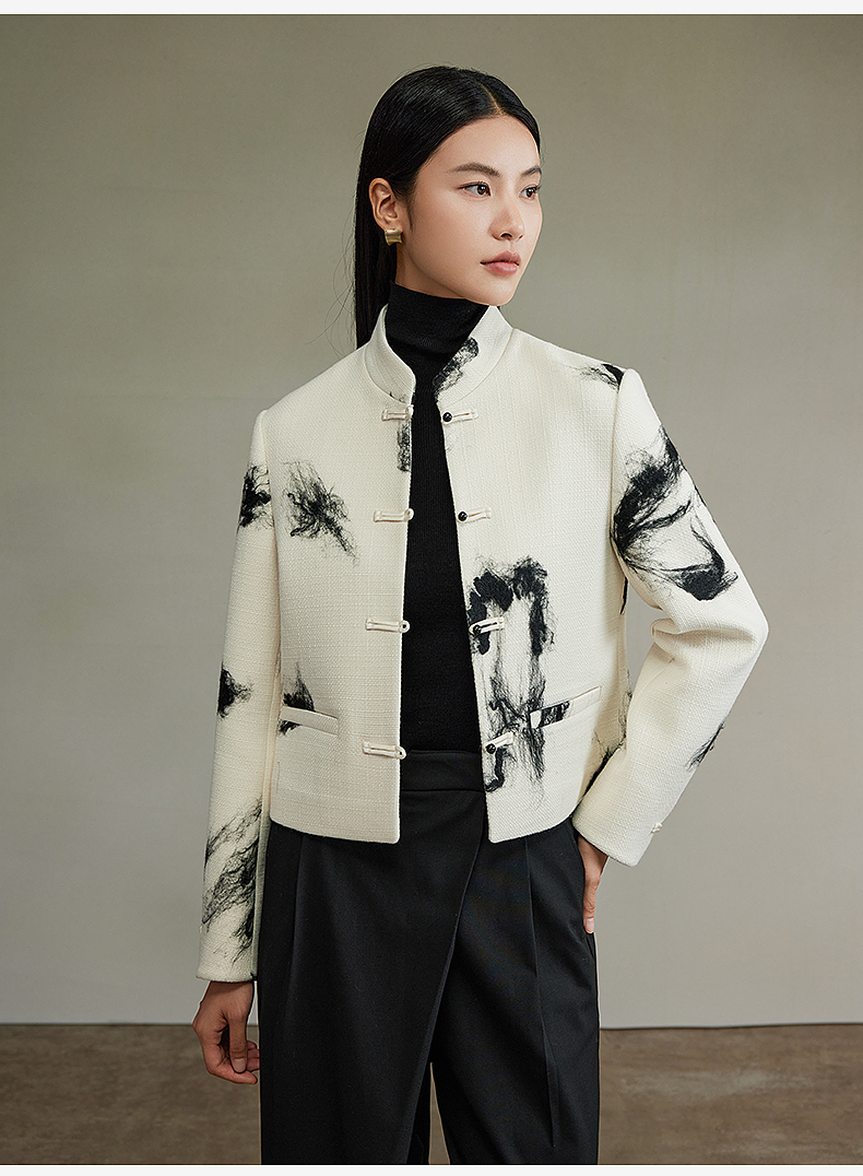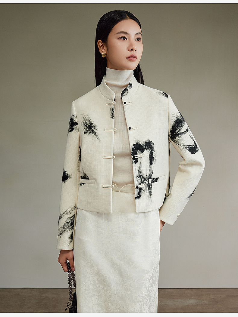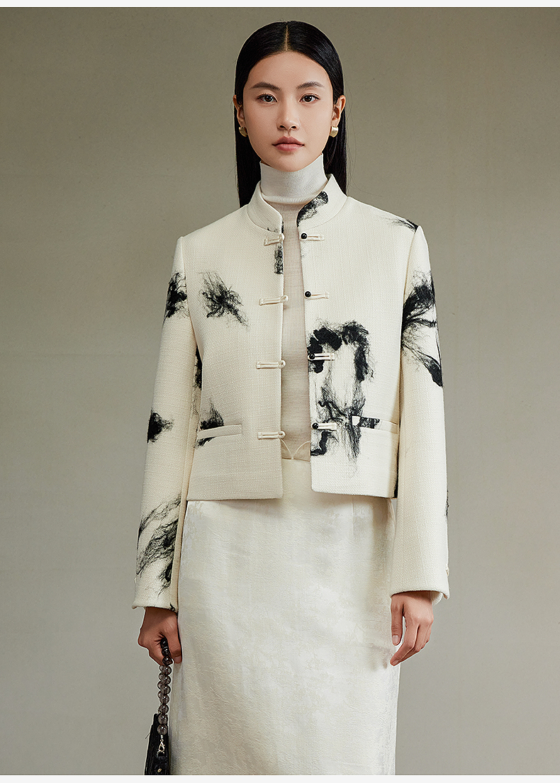 西嘉【秋季新品】水墨感JI简提花立领箱型时髦新中式外套