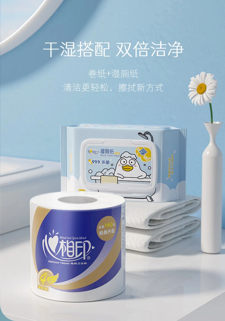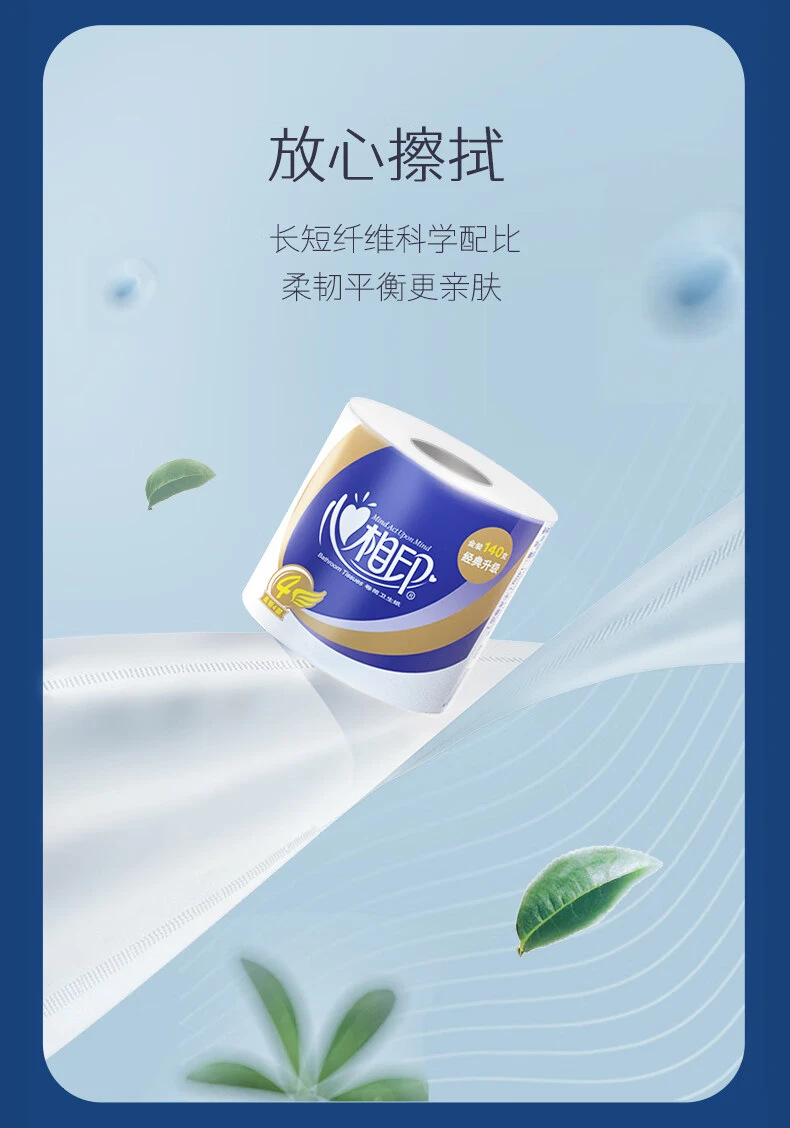 【4层柔厚,全新升级,经济生活,品质不间断】心心相印卷纸 有芯卷筒纸巾 27卷整箱装 卫生纸巾厕纸手纸 家用实惠装-QQ