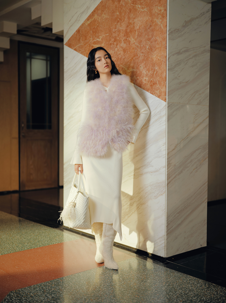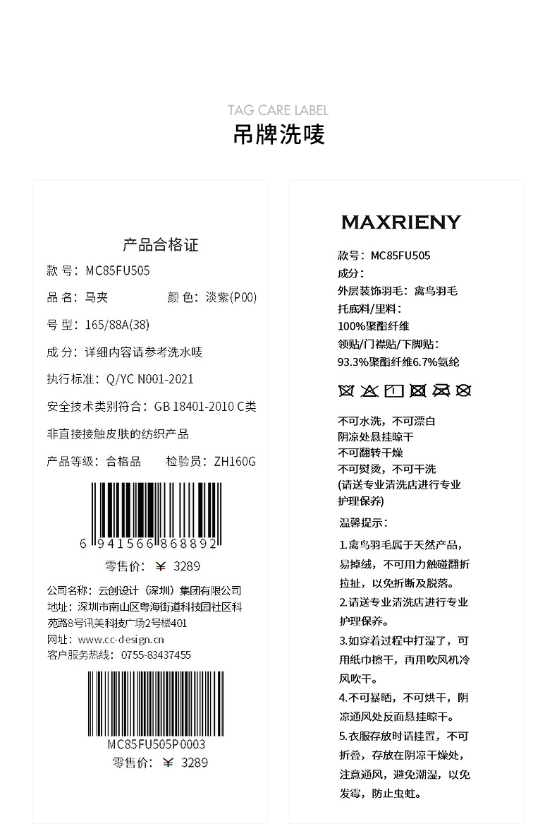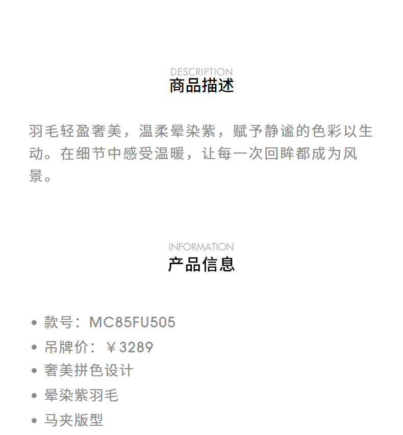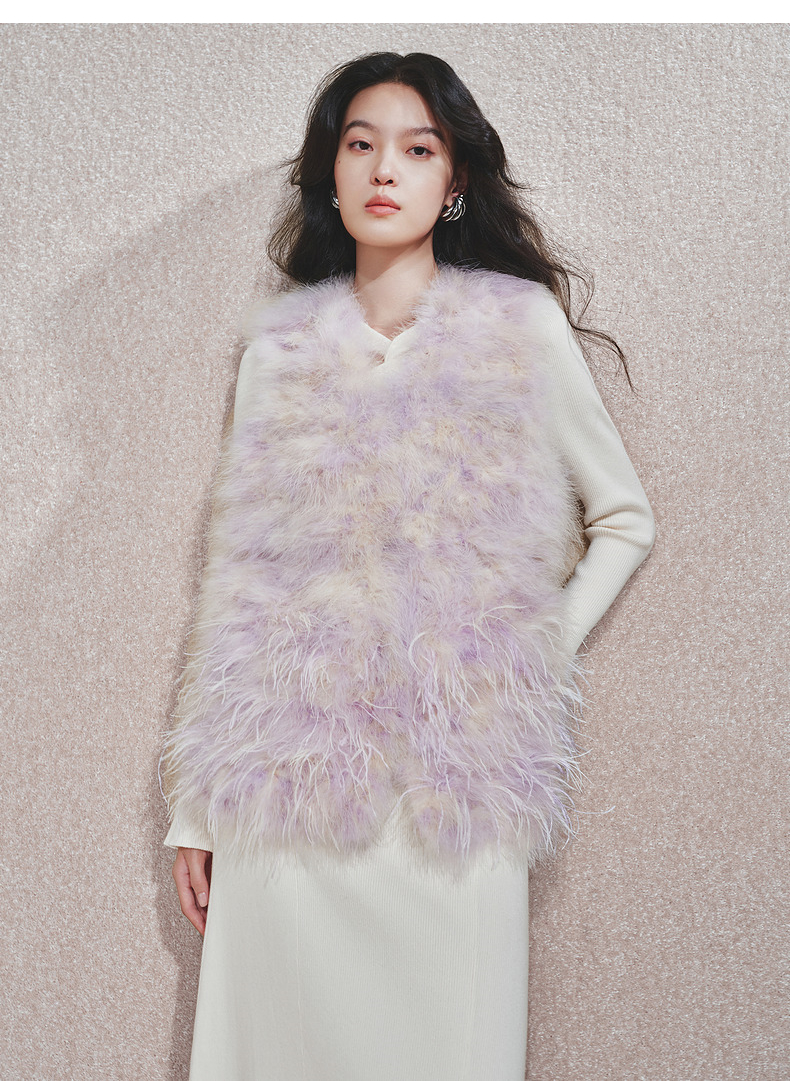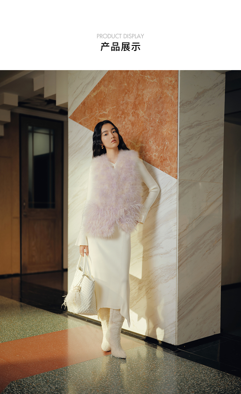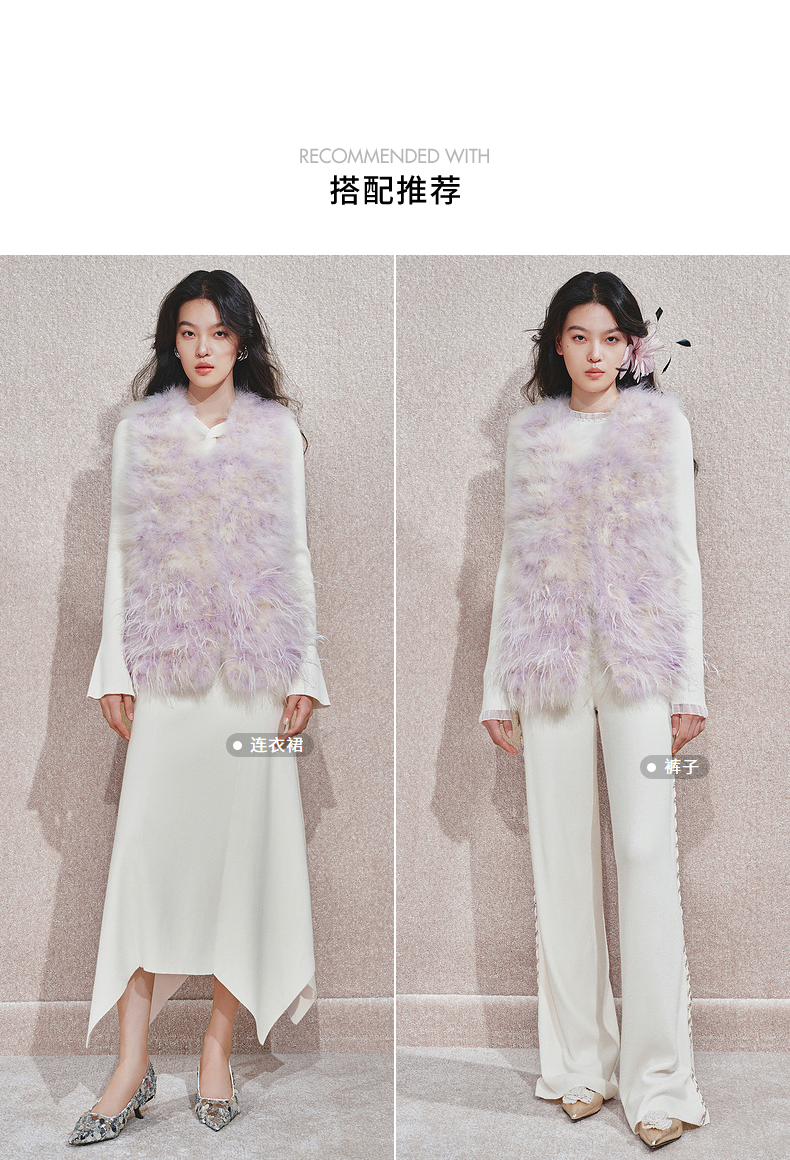 【贵雅日常-商场同款】MAXRIENY钉珠装饰羽毛马夹女秋冬新款(货号:MC85FU505)