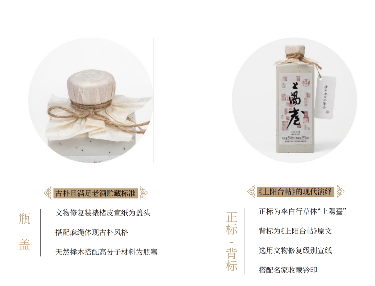上阳台酒是由茅友公社出品的53%vol酱香型白酒,甘润适口,醇厚雅致,然悠长沁人,恰如《上阳台帖》笔墨一尺,道尽气象万千。“上陽臺”于2011年取得酒类经营商标,2016年成立了酱香酒专家评审委员会。 经过5年的研究和考察,从茅台镇核心产区严选陈年基酒,聘请大师级专家勾调,在产品呈现上赋予“唐代风骨、宋代美学”的文化属性。