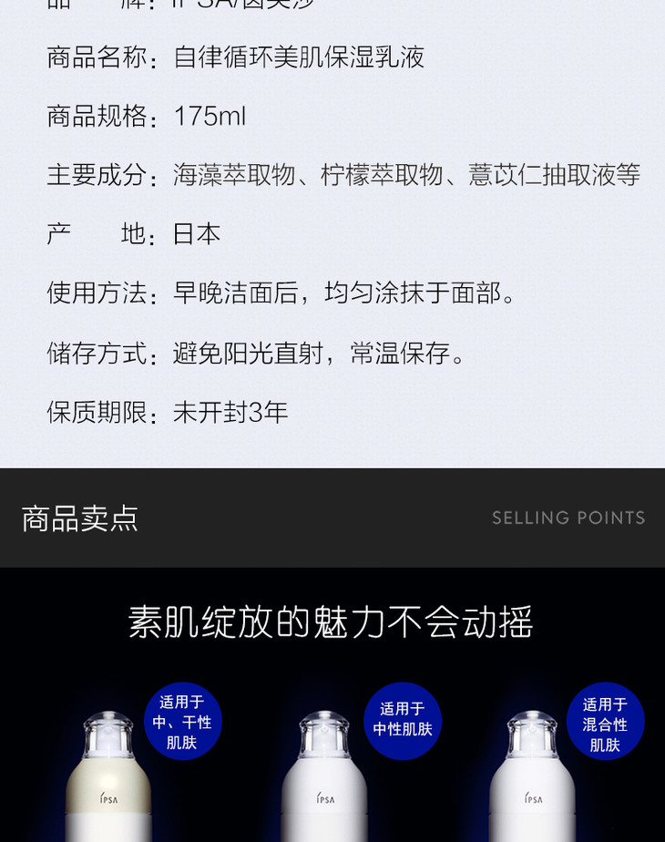 IPSA茵芙莎自律循环乳液保湿美白敏感 175ML